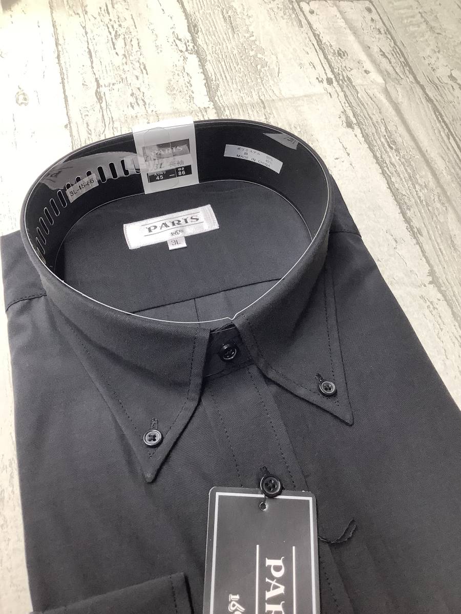 新品未使用★45-86 3Lサイズ ★ポリエステル55% 綿45%シャツ★黒無地無地 ボタンダウンカッターシャツ★