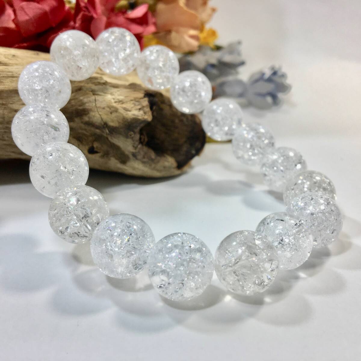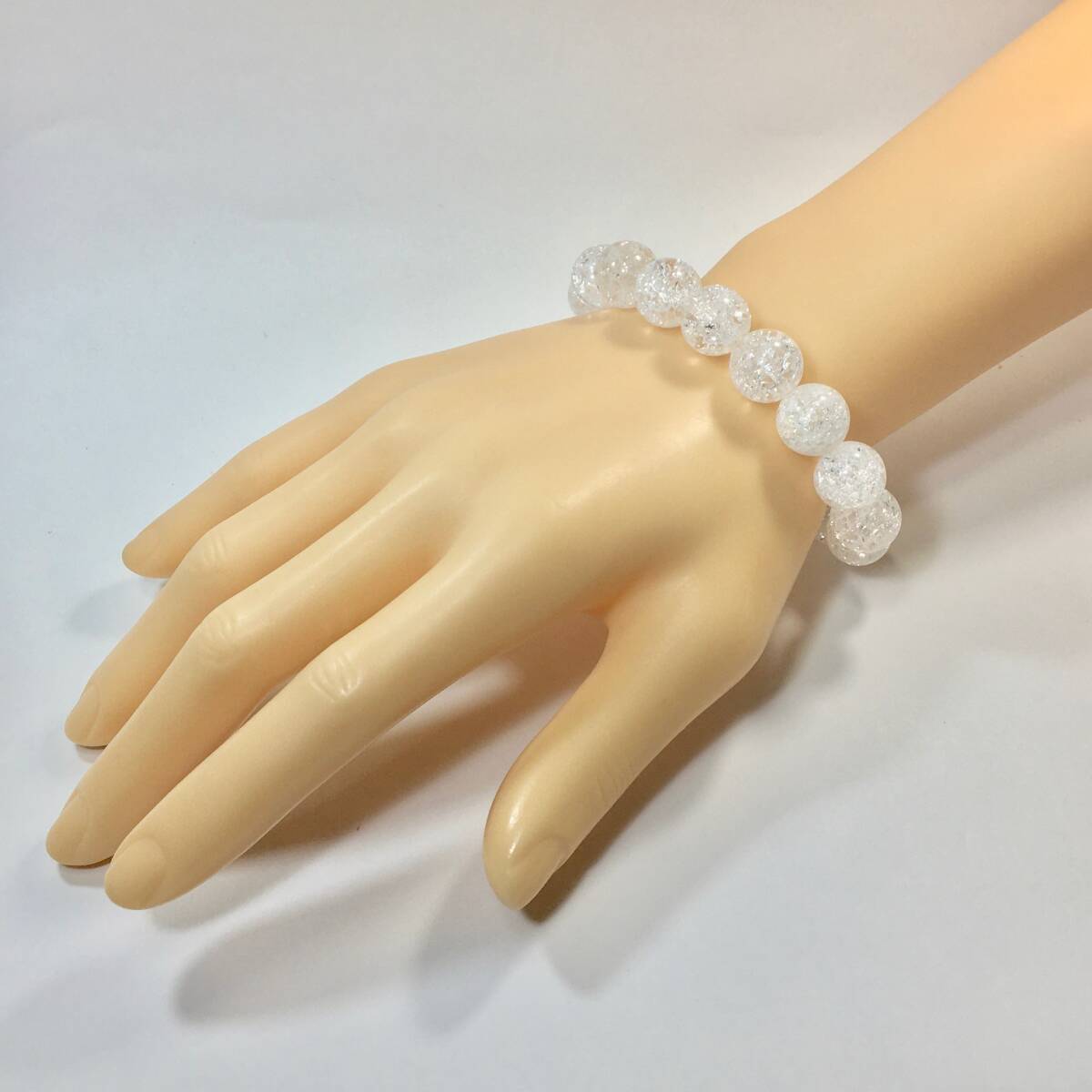 クラック水晶 パワーストーン ブレスレット 12mm 天然石ブレス シンプル 開運 浄化 数珠ブレス メンズ 男性