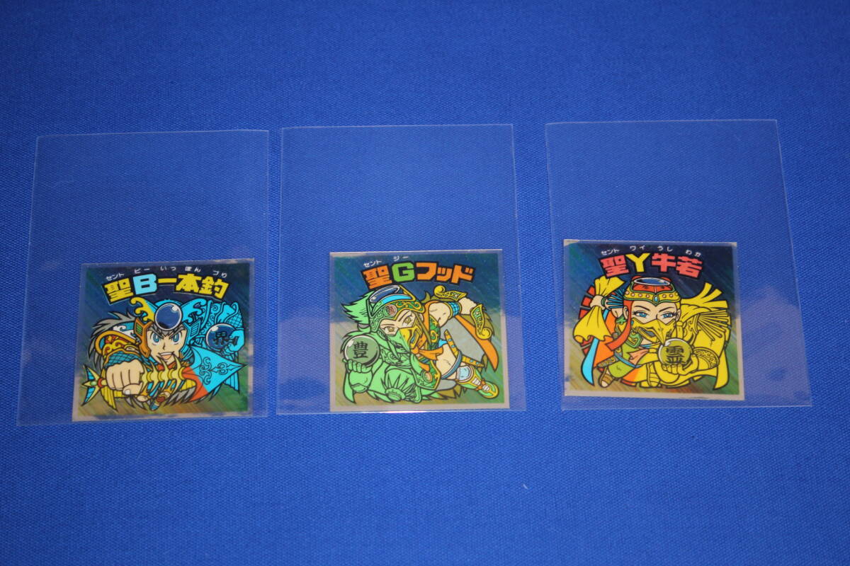 ビックリマンチョコのシール 「 聖B一本釣、聖Gフッド、聖Y牛若 」 の3枚セットです。