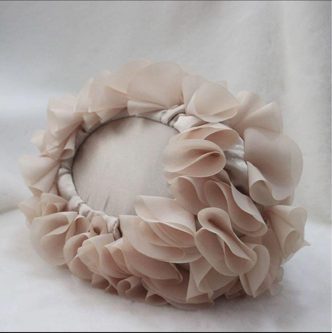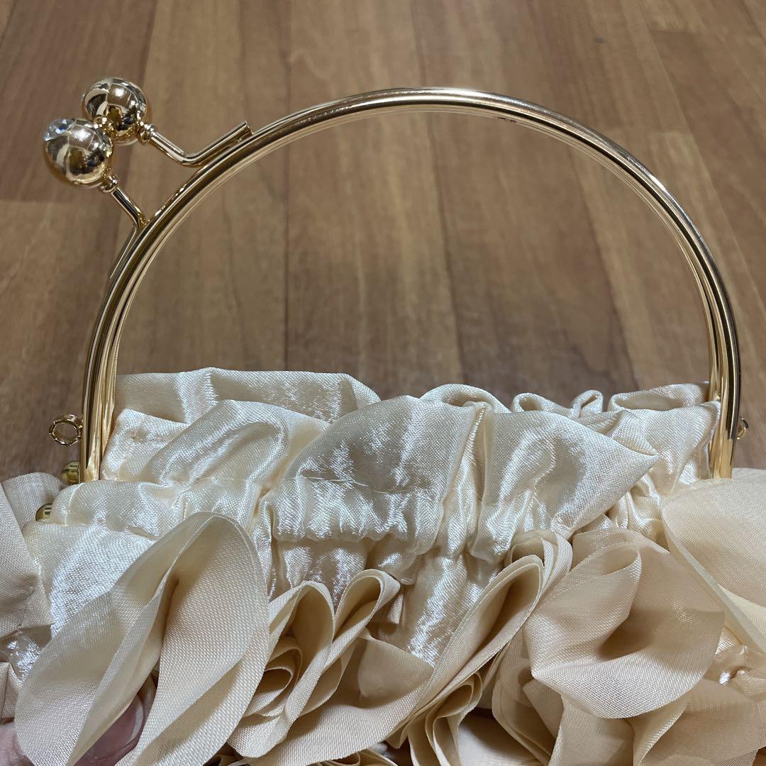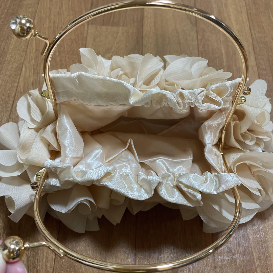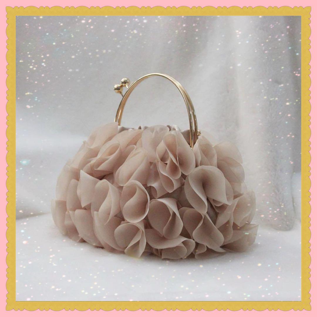 華やかな花びらを纏ったようなデザインが目を引くパーティーバッグです。