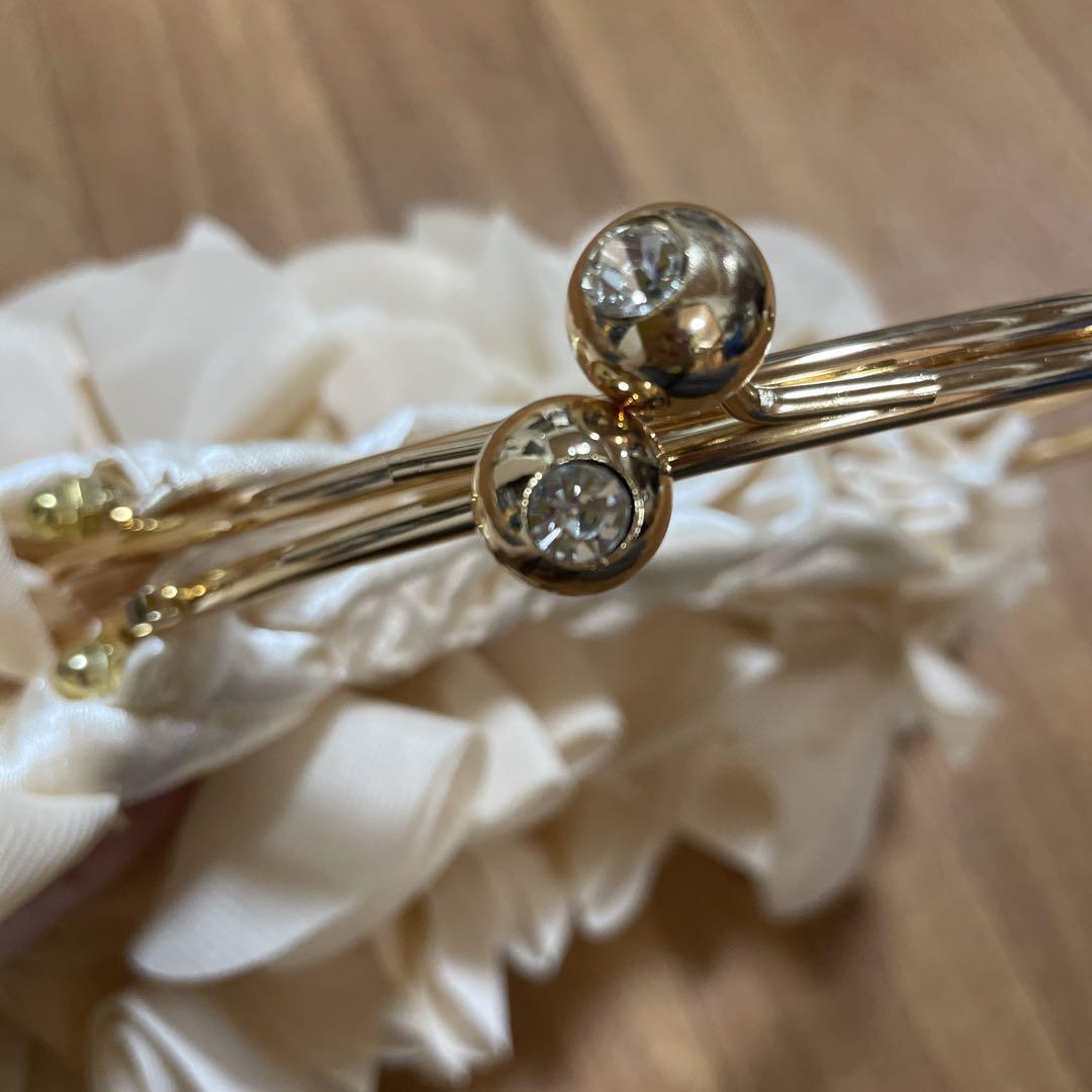 ゴールドのがま口は、ビジュー付きの技ありデザインで高見えします。