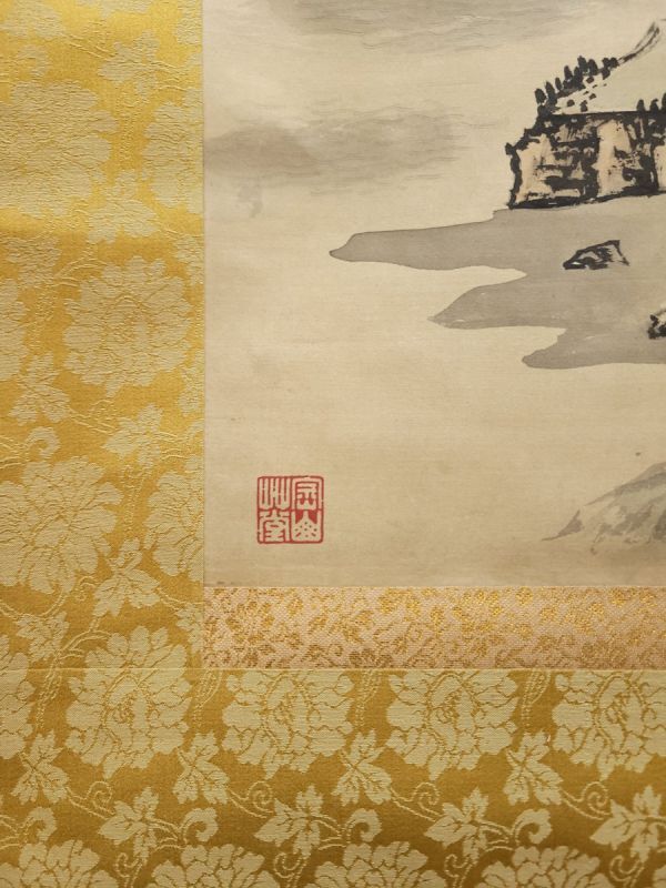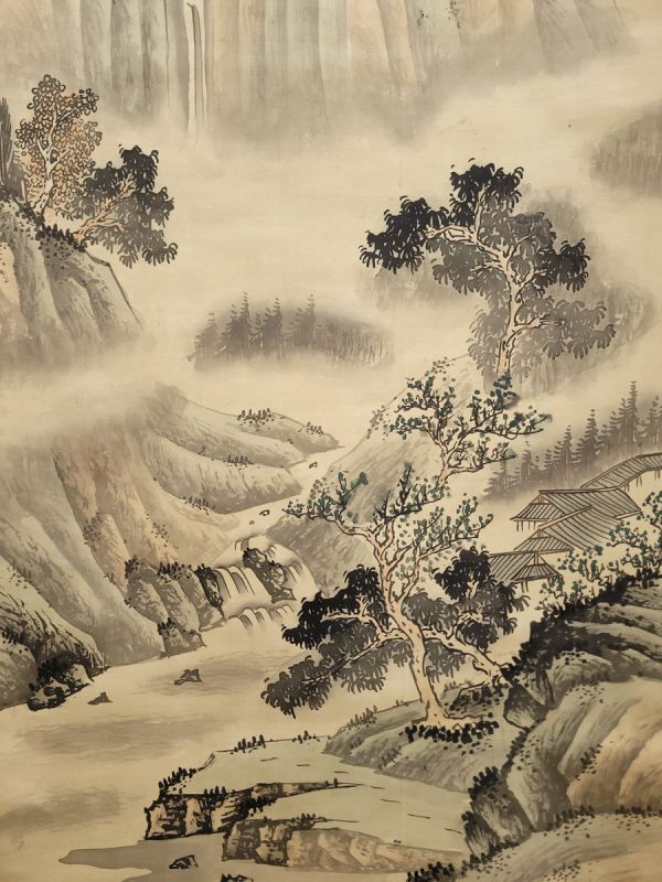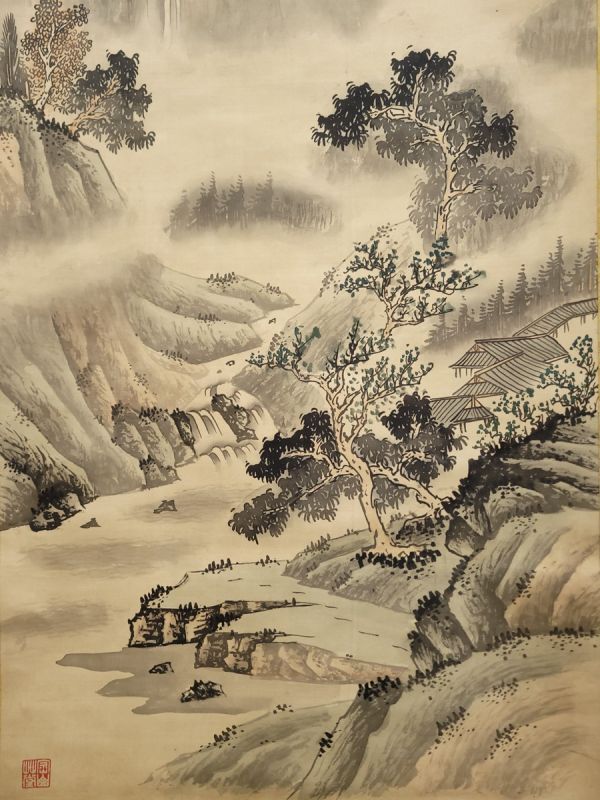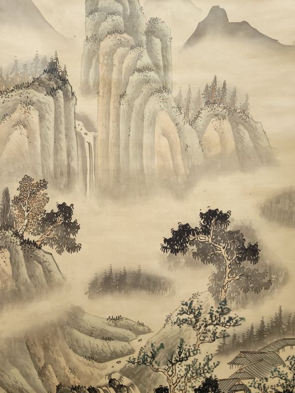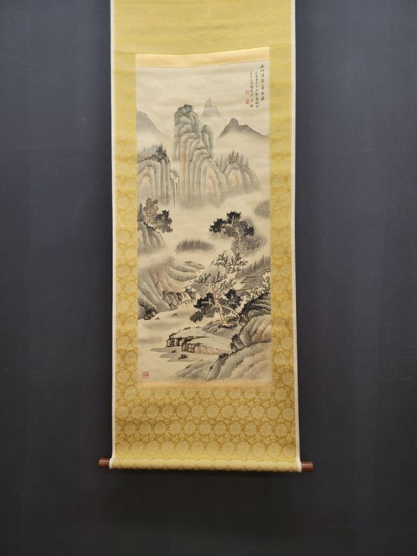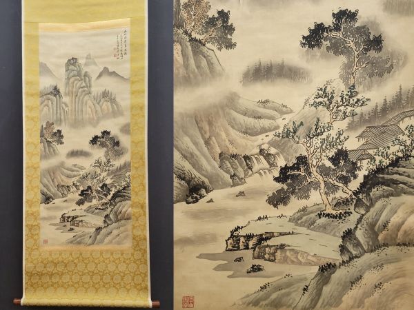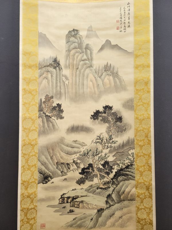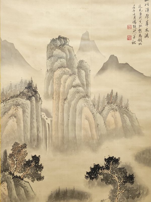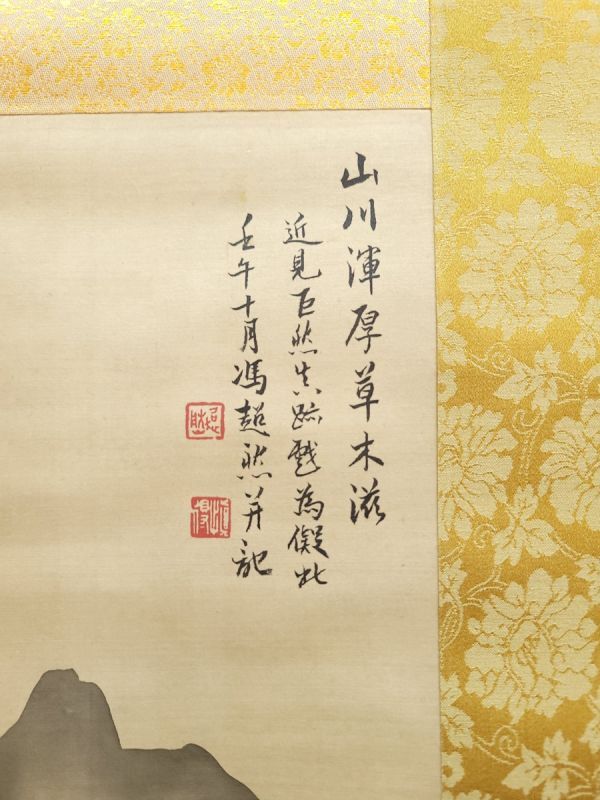 【瓏】「馮超然作 山水図」近代画家 肉筆絹本 掛け軸 書画立軸 巻き物 中国画 古美術 骨董品 蔵出