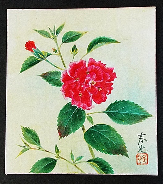 6603☆☆不明色紙・肉筆・春光・花画・不明・☆