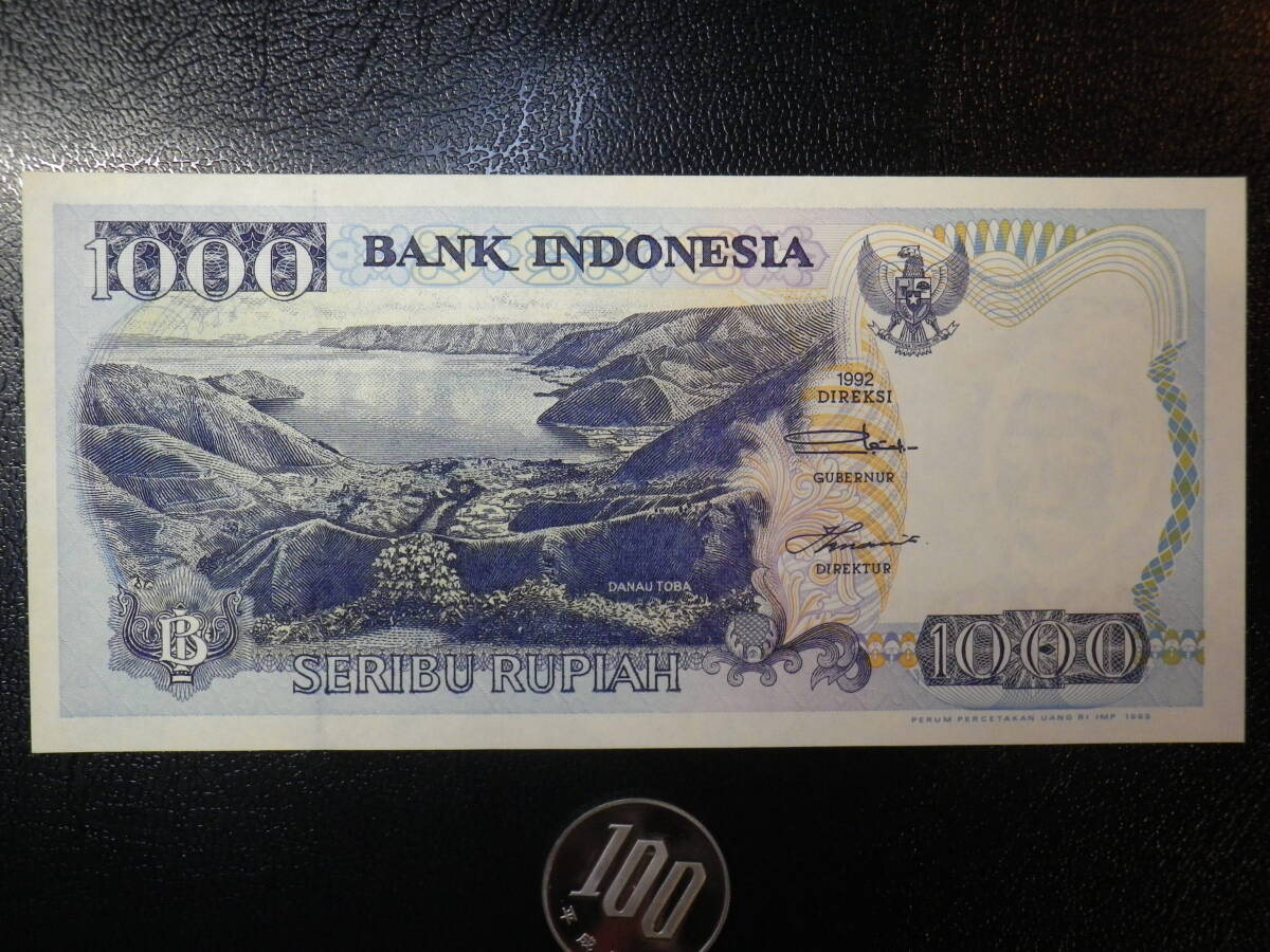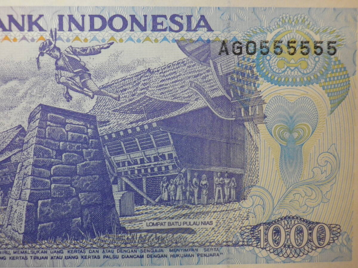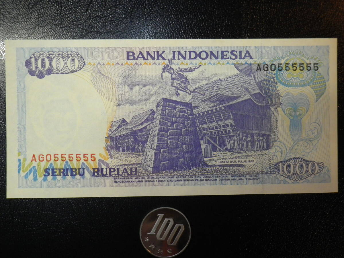 珍番 インドネシア 1992年 1000Rupiah AGO 555555 未使用