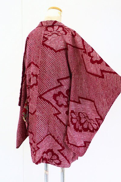 【着物フィ】アンティーク 長羽織 臙脂色 身丈85.0cm レトロ 大正モダン 仕立て上がり 正絹 kimono 16257 |