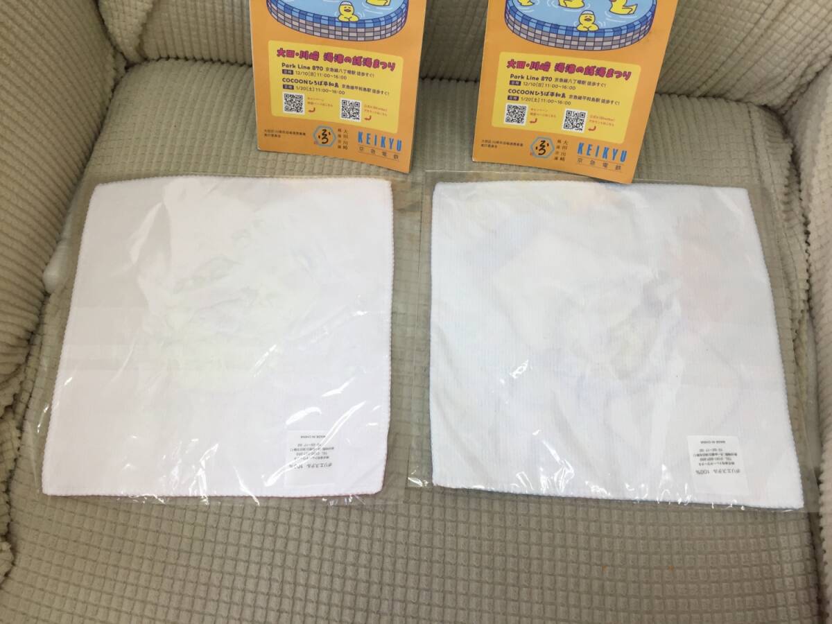 ◎サイズ 縦×横 画像2:約20×20cm 画像3:約21.5×21cm 2枚セットで重量:約 31g ※パンフレット込み:約63g ※多少誤差は生じると思います。 -------------- ◎状態 未使用。 発送の際は、ハンカチ、パンフレット ともに2つに折りたたみます。 折れ目が付いてしまいますが ご了承ください。 --------------
