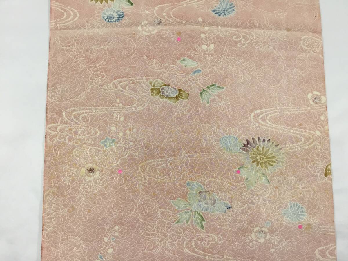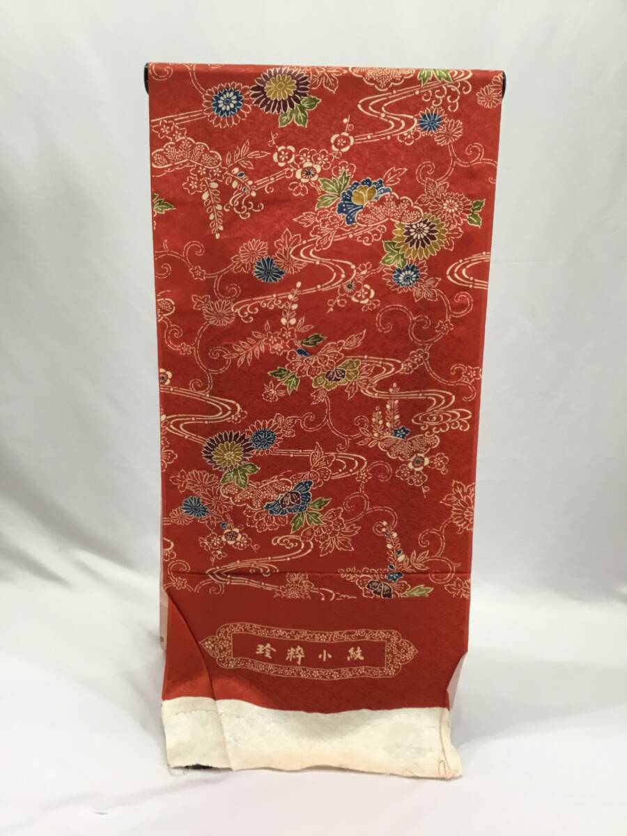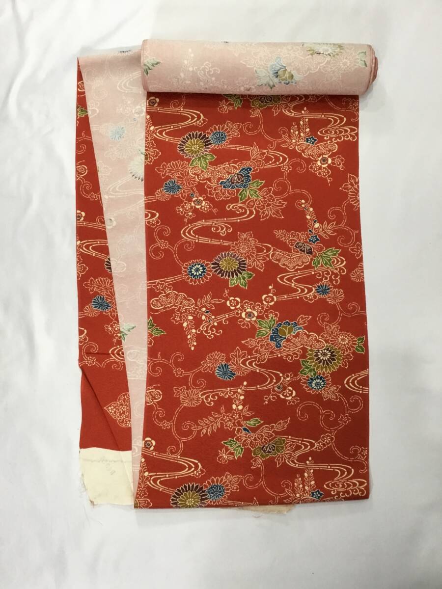 小紋/正絹/未使用品/朱/流水に花/反物/美品/未仕立て/8365 |