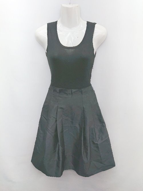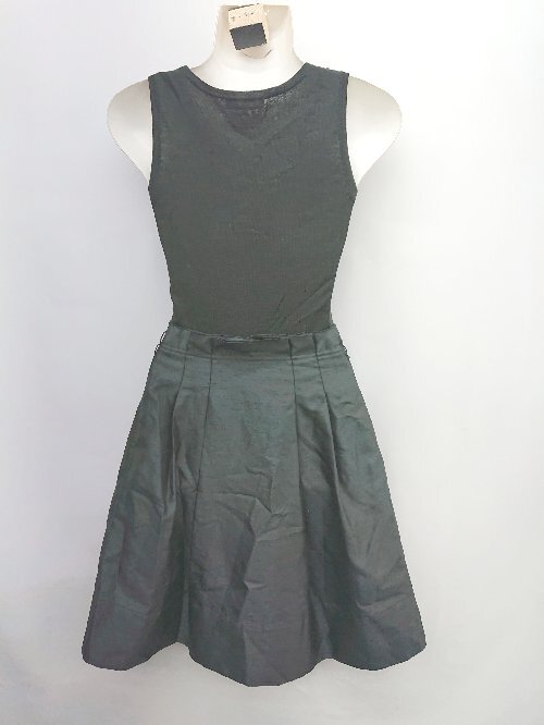 ◇ Apuweiser riche アプワイザー リッシェ 切替 ノースリーブ 膝丈 フレア ワンピース サイズ1 ブラック レディース P