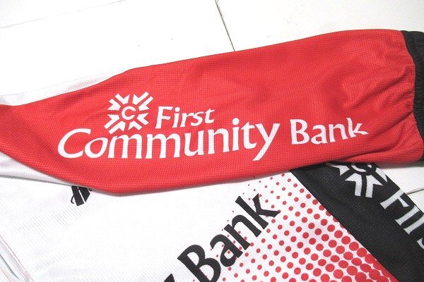 ★正規品です。フルジップタイプのサイクルジャージです。first community bankのロゴが全体的にデザインされております。
