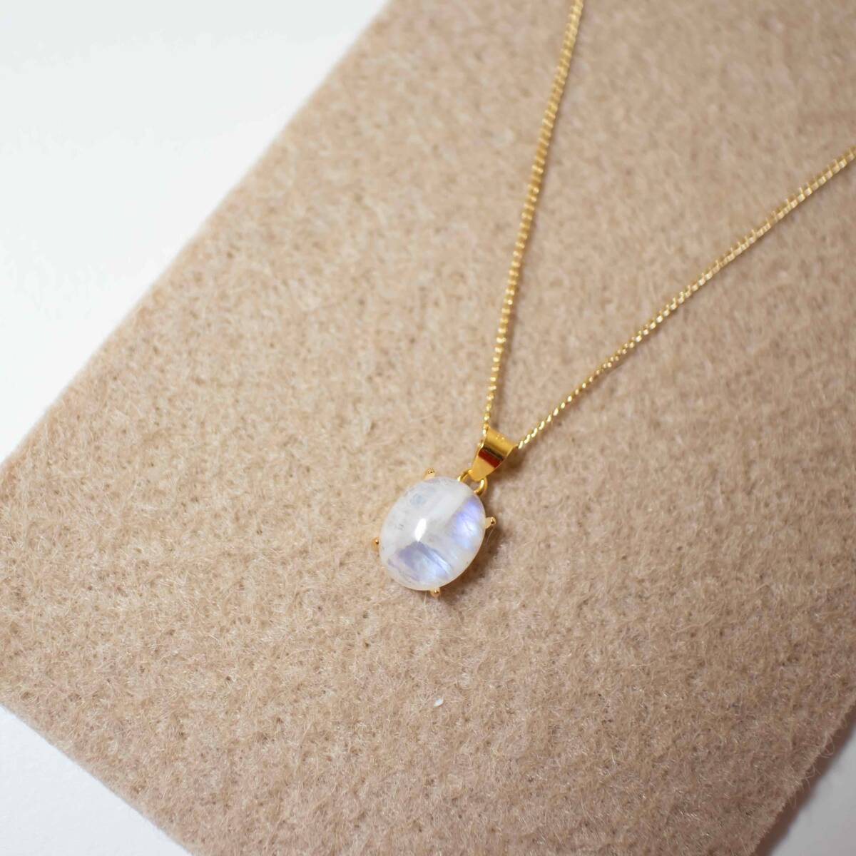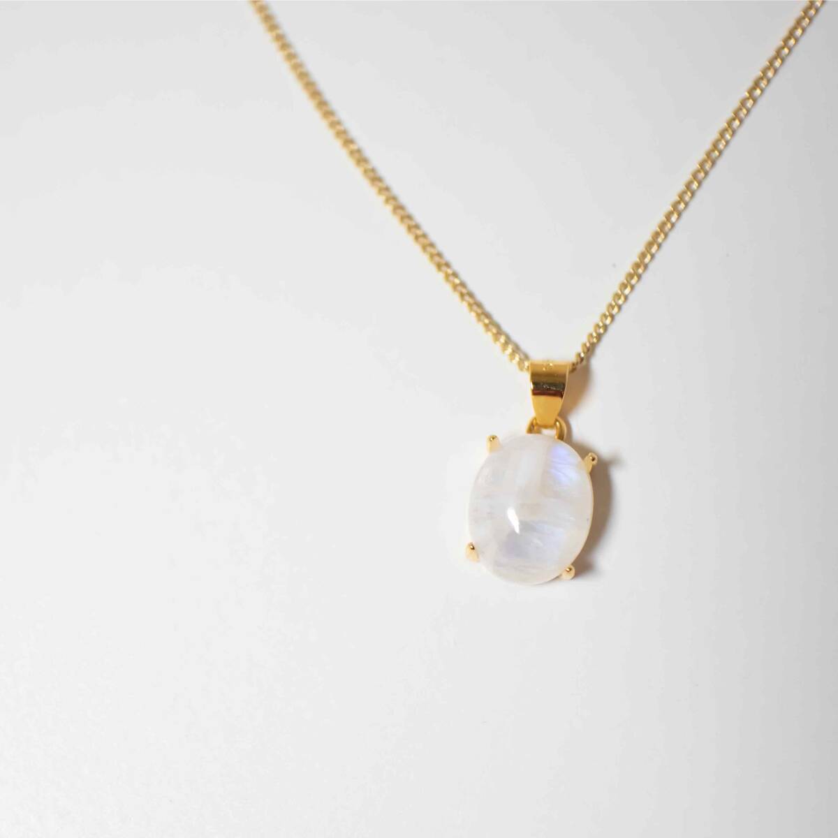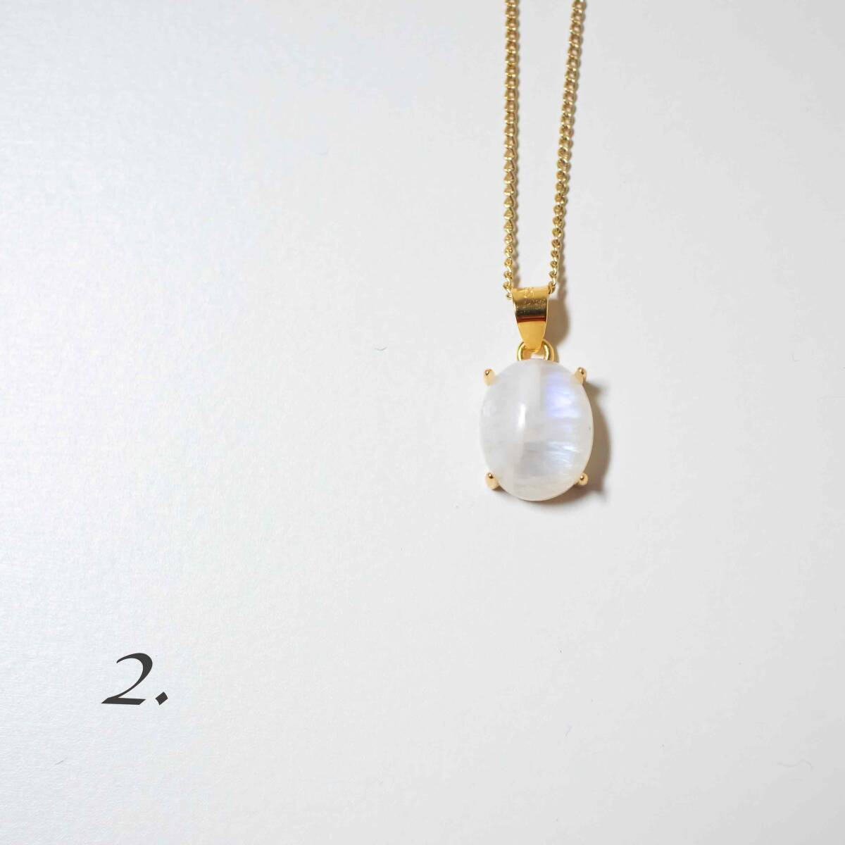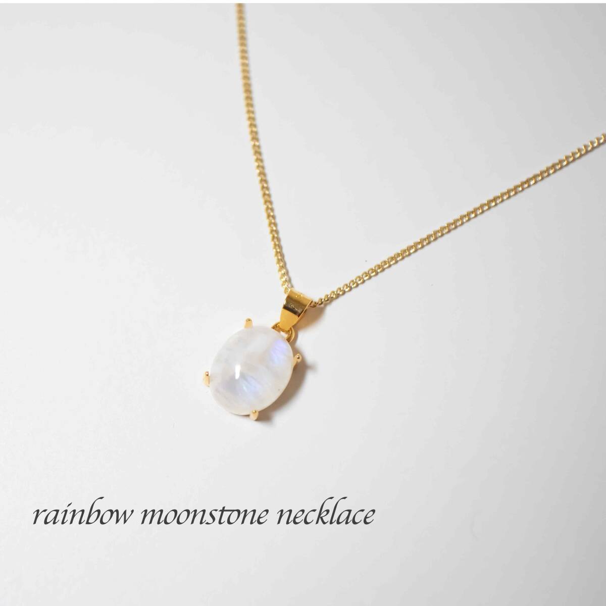 天然石 レインボームーンストーン ネックレス【アジャスター付き】ゴールド 白