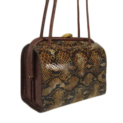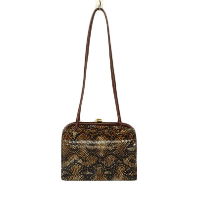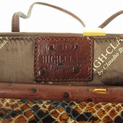 HIGH-CLASS by Claudio Budel ハイクラス ショルダーバッグ クロコダイル パイソン レザー 茶 ブラウン レディース