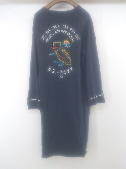 ◇ Another Edition アナザーエディション Vネック 刺繍 長袖 膝下丈 ワンピース ネイビー レディース P