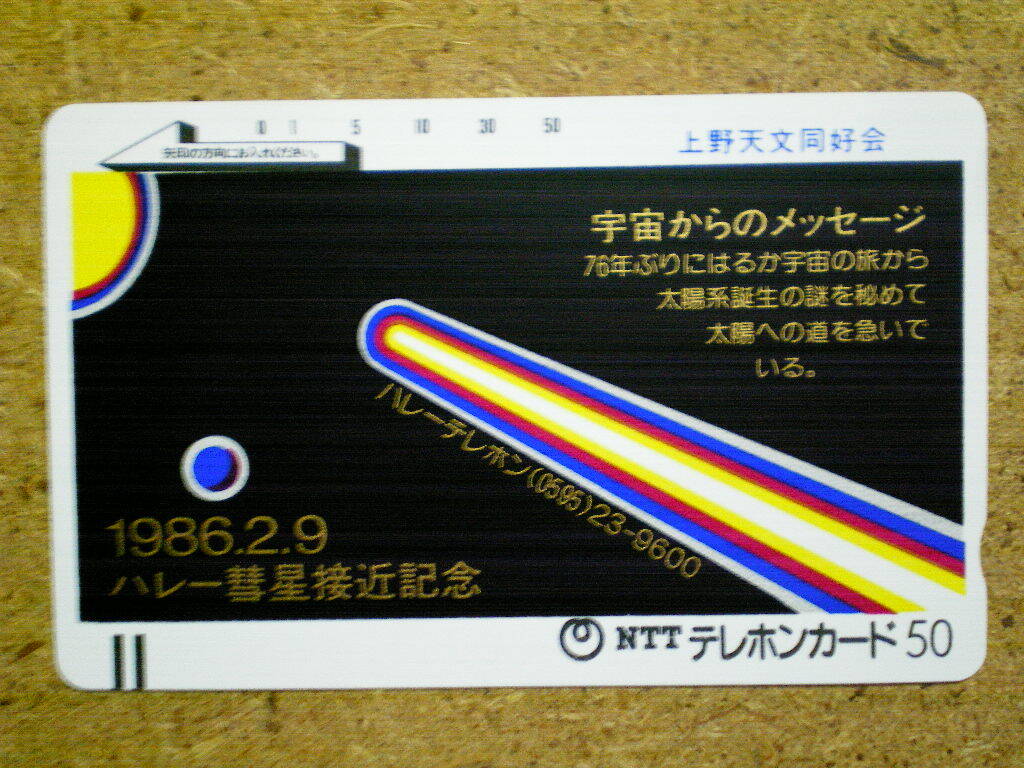 utyuha・宇宙 ハレー彗星接近記念 上野天文同好会 矢印白色 50度数 未使用 テレカ