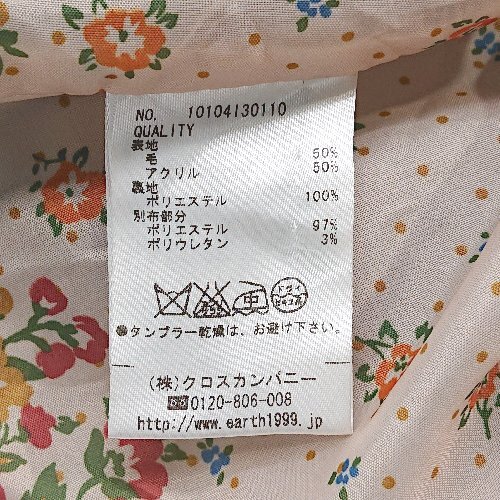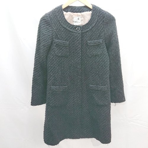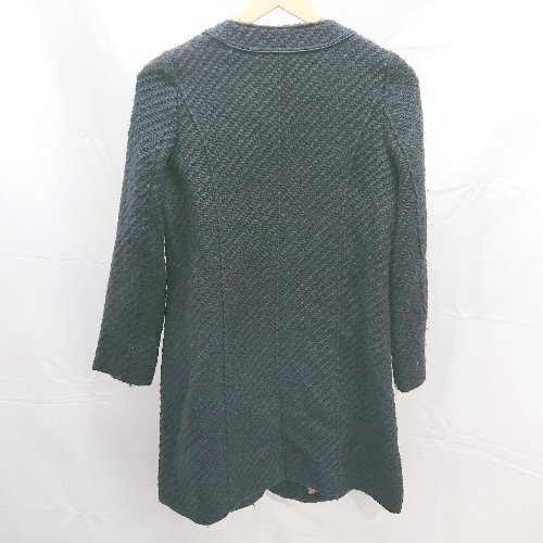 ◇ earth music&ecology フロントボタン ポケット 無地 ウール混 長袖 コート サイズS ブラック レディース E