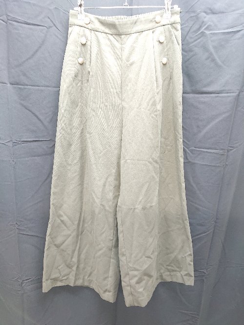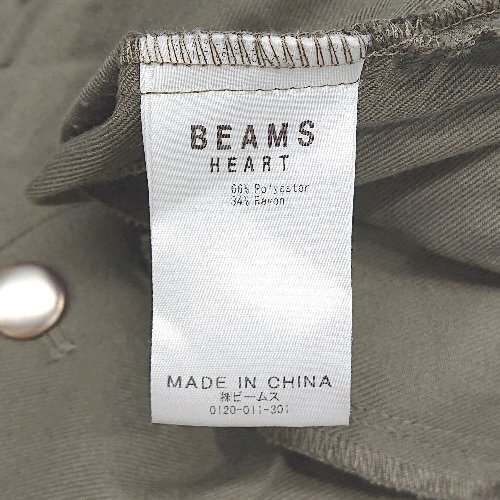 ◇ BEAMS HEART サイドチャック ウエストゴム フロントポケット 無地 パンツ サイズM カーキ レディース E