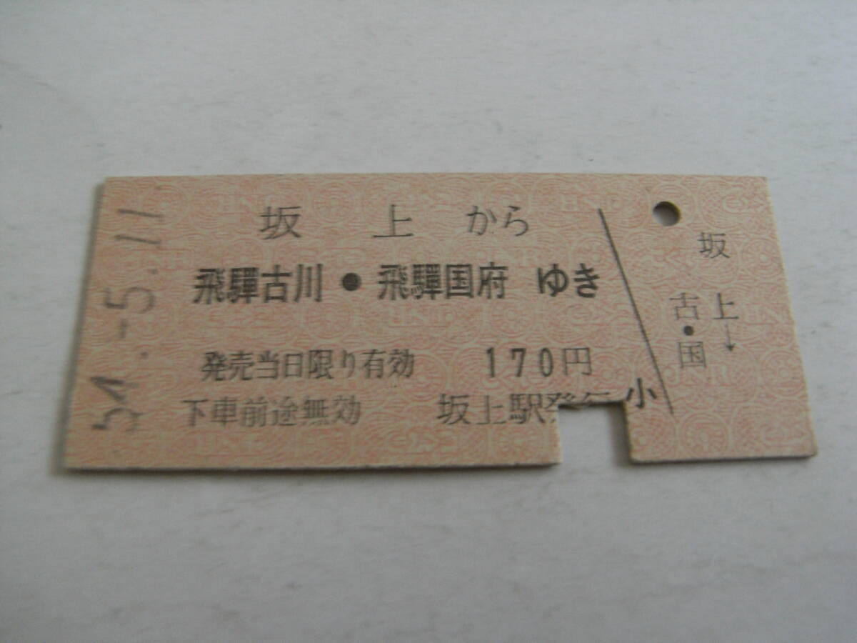 高山本線 坂上から飛騨古川・飛騨国府ゆき 170円 昭和54年5月11日 坂上駅発行