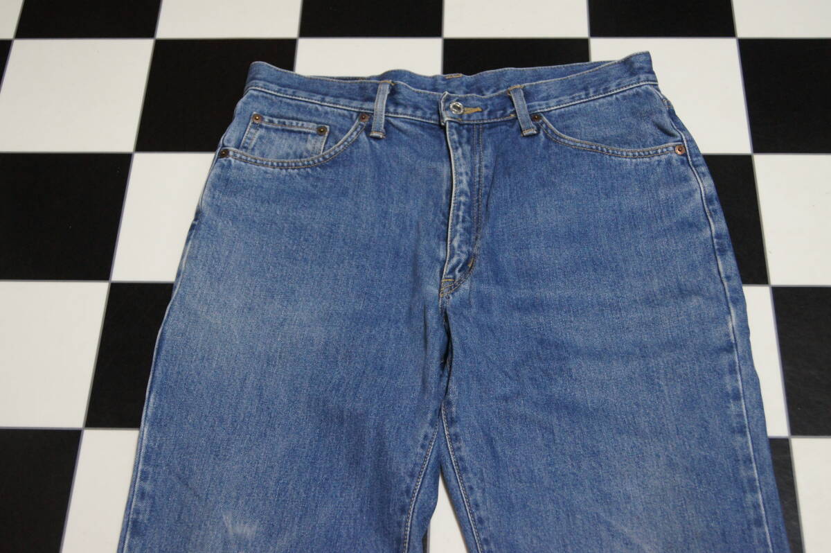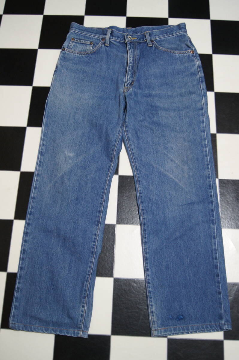 <商品状態のランク> Cランク <表示サイズ> W35 W88 H106 <素材> 綿100% <商品説明・コメント> 色はインディゴブルー系 ユーズド加工 US CLASSIC 左足裾付近の前面にペイント汚れあり 革パッチ ノークレーム、ノーリターンでお願いします 詳細サイズ(平置きで計測)をよく確認して入札してください |