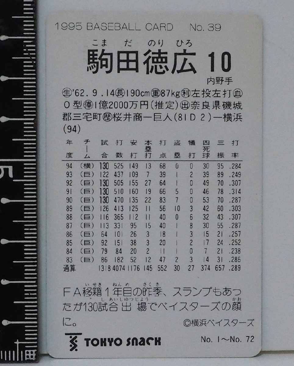 95年カルビー東京スナック プロ野球カードNo.39【駒田 徳広 内野手 横浜ベイスターズ】平成7年 1995年 当時物Calbeeおまけ食玩BASEBALL