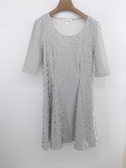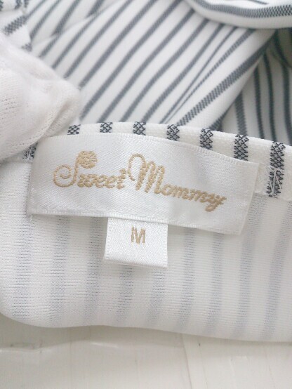 ◇ Sweet Mommy ストライプ マタニティ 授乳服 五分袖 ミニ ワンピース サイズM ホワイト グレー系 レディース E