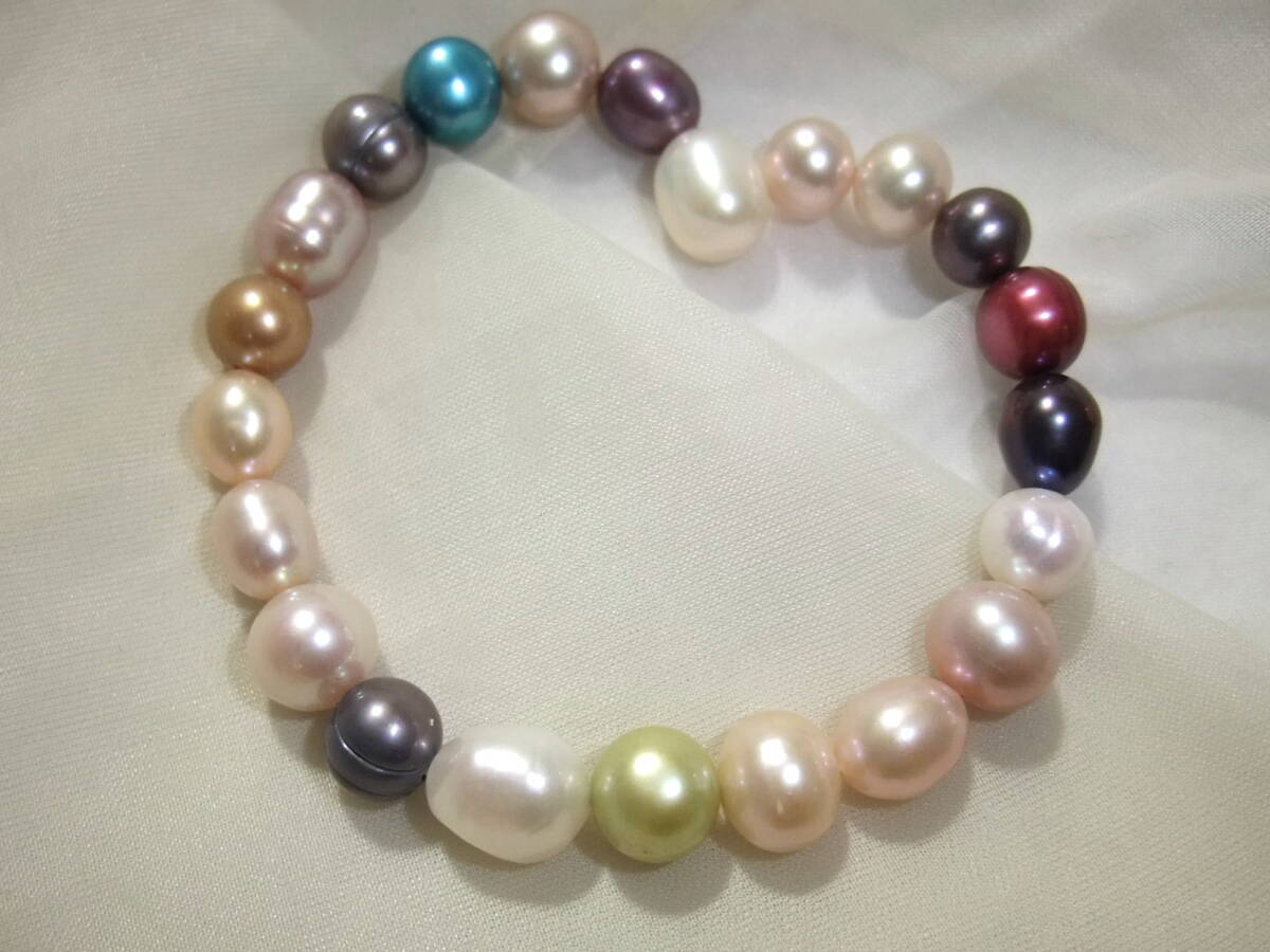 169-2高品質!綺麗♪極上ルース入も!本物真珠パールブレスレットpearl bracelet上等な淡水真珠色々まとめてゴム仕様ブレスレット