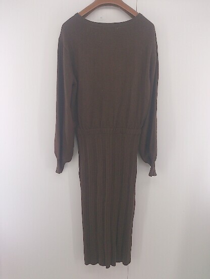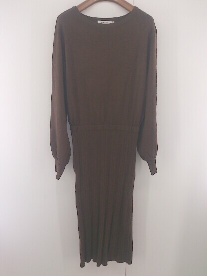 ◇ MOUSSY マウジー ボリュームスリーブ 長袖 膝下丈 ニットワンピース サイズF ダークブブラウン系 レディース E