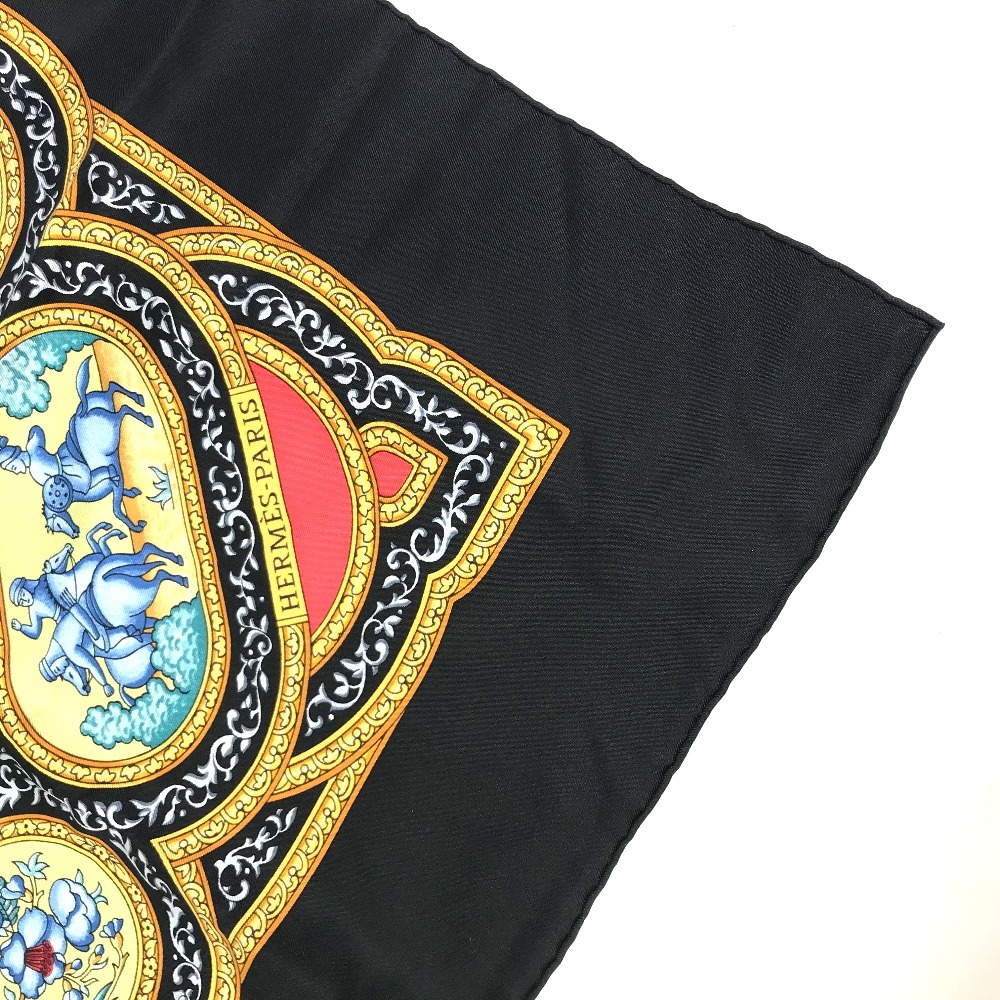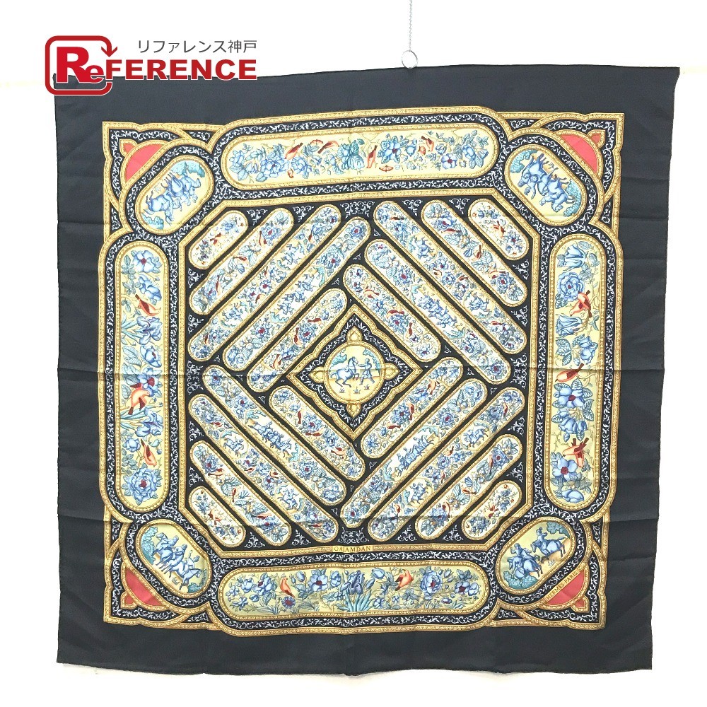 HERMES エルメス カラムダン QALAMDAN カレ 90 スカーフ シルク ブラック×グリーン×ブルー系×ゴールド レディース【中古】新品同様