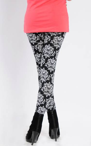 【美脚◆個性派レギンス◆081】ダマスク柄★ブラック