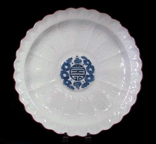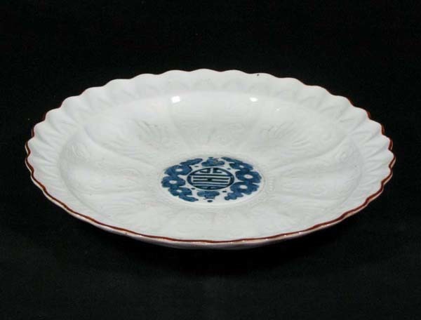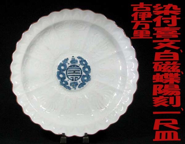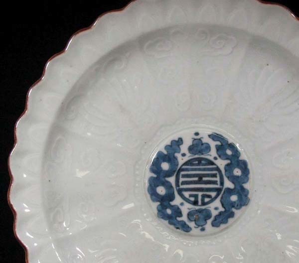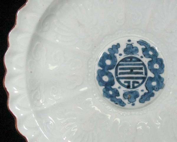の陽刻・口径に輪花模様・高台に陶印有り・無傷.箱無☆★