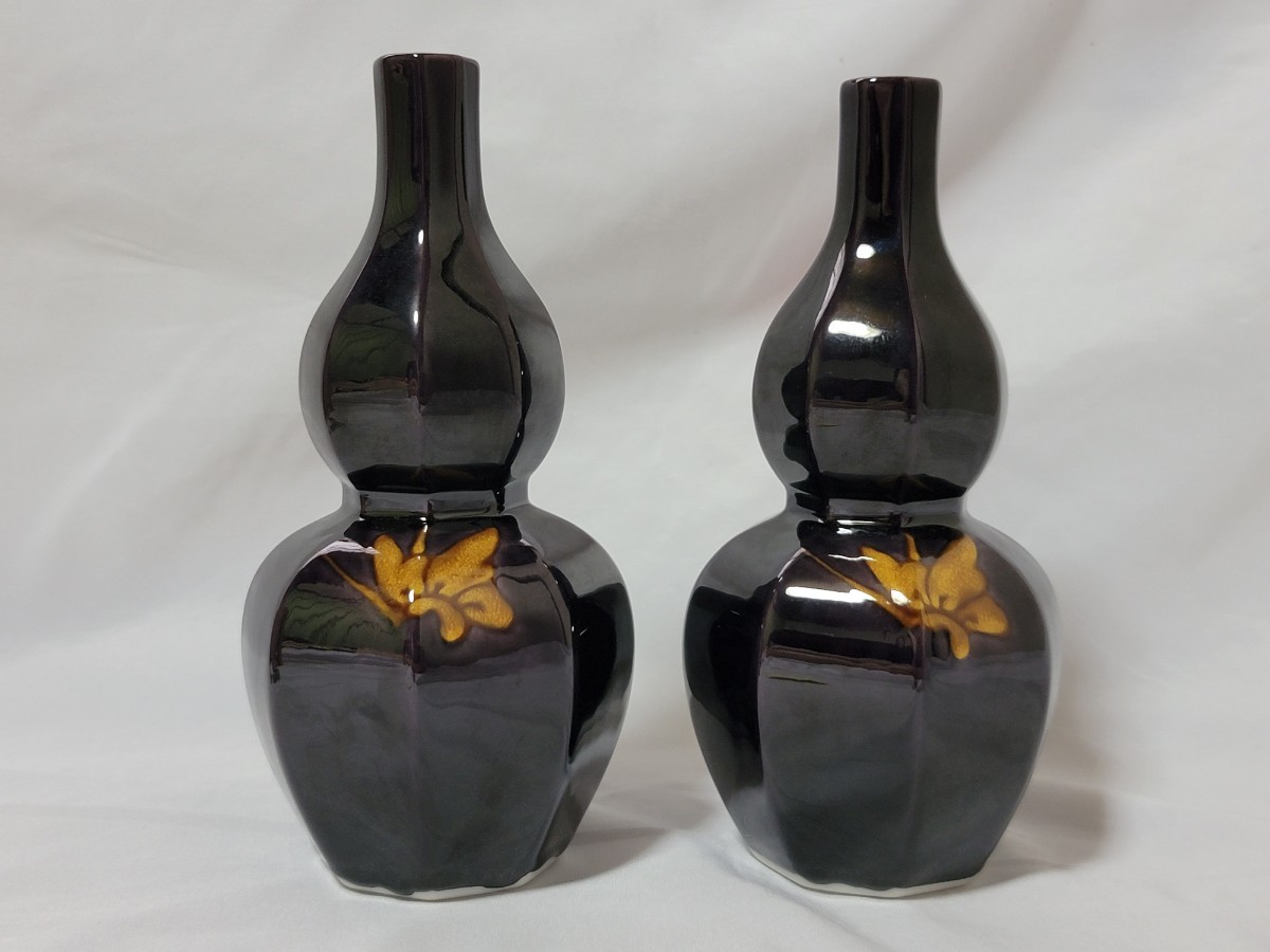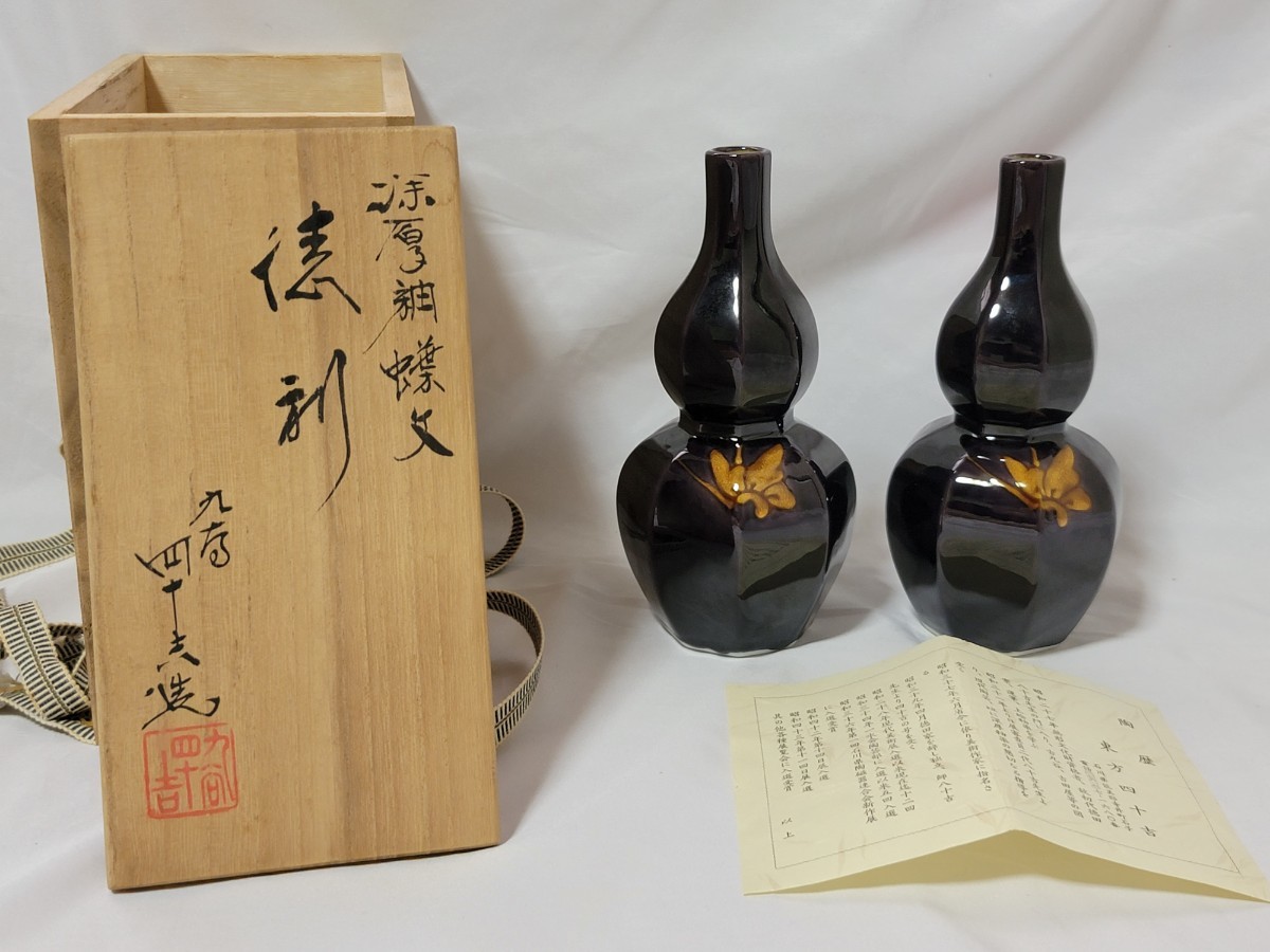 九谷焼 深厚釉蝶文 徳利 東方四十吉 酒器