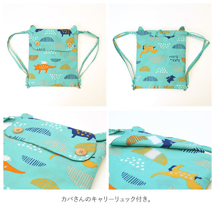 | 商品説明 | ・・レイングッズブランド「kukka hippo」よりランドセルの上からも着れるレインコートが登場! ・kukka hippo(クッカヒッポ)はフィンランドでは、「花」と「カバ」の意味。 ・胸元についている木製の飾りボタンがオシャレ。 ・飾りボタンの裏はスナップボタンになっており、子供でも着脱しやすいのがポイント。 ・首元には面ファスナーが付いていて、雨の侵入をしっかりガード! ・背中のマチを外せばタックが広がり、ランドセルやリュックの上からも着れる! ・背中にはカバさんのリフレクターがついているので暗い道でも安心♪ ・フードには透明窓付きで視界良好◎ ・カバさんのキャリーリュック付き。 ・兄弟姉妹でお揃いにしてもとっても可愛い。 ・ |