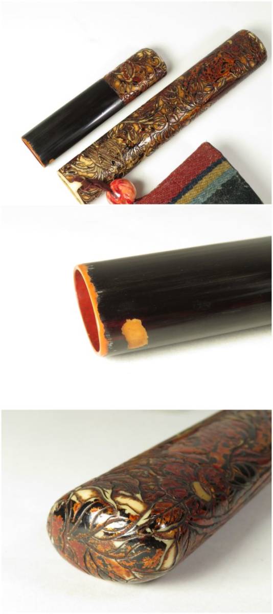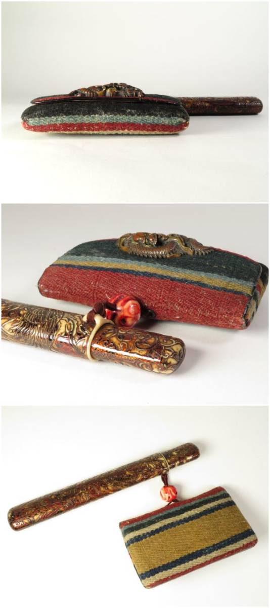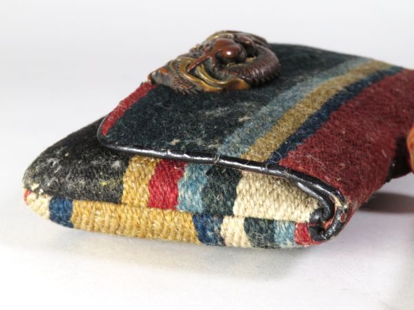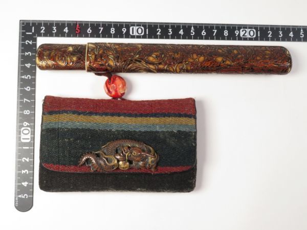【状態】 ●経年を考慮し状態はいいと思います。 画像でのご判断をお願いいたします。 【サイズ(約)】 ●財布:高さ7.3cm 幅12.6cm 奥行2.5cm 筒 :全長21.2cm 幅3cm 奥行1.9cm (素人寸法ですので、若干の誤差はお許し下さい) |