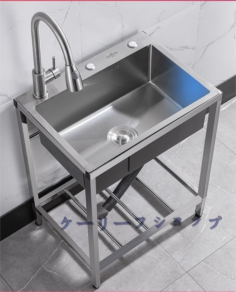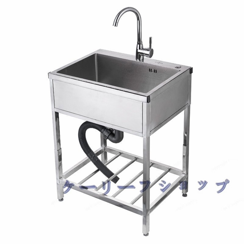 ステンレス製流し台 台所 1槽シンク 食器洗いシンク 業務用 家庭用 食器洗い器 冷熱蛇口/スタンド付き