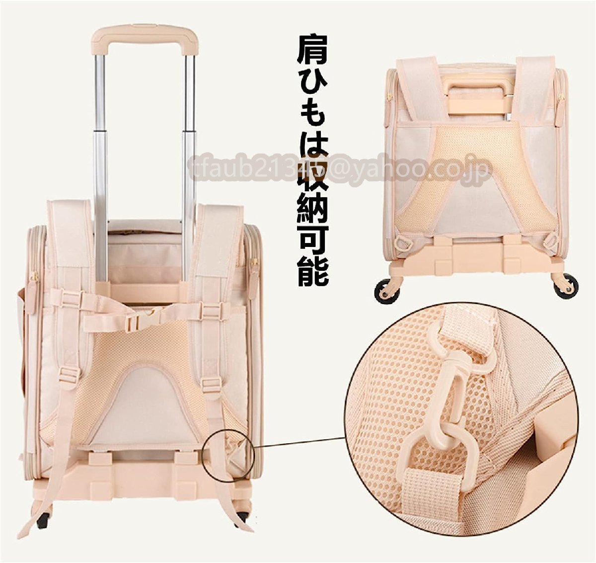 【調節・折りたたみ可能】こちらの多機能ペットキャリーカートは分解すれば、キャリーバッグとキャリーカートとして別々に機能することができます。キャリーカートはプルロッドが階調節可能、折り畳みも可能です。キャリーバッグは拡張できる一方、コンパクトに折り畳み、収納できます。