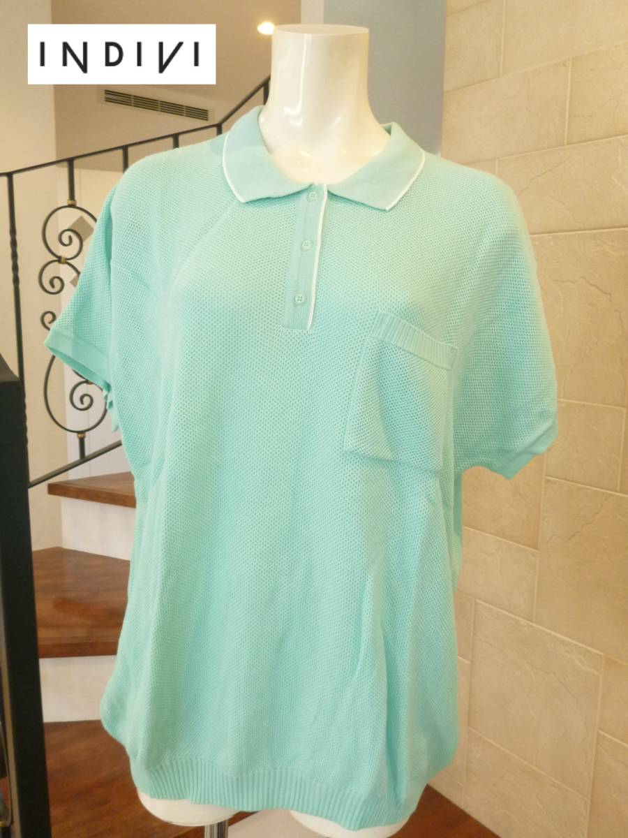 1.5万 新品 INDIVI(インディヴィ)インディビ★ 日本製 ミントグリーン 半袖 セーター 48 XL相当