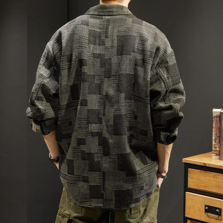 メンズシャツ 長袖 デニムシャツ 厚手 ウエスタンシャツ シャツジャケット ワークシャツ トップス カジュアルシャツ 開襟 黒 M~4XL