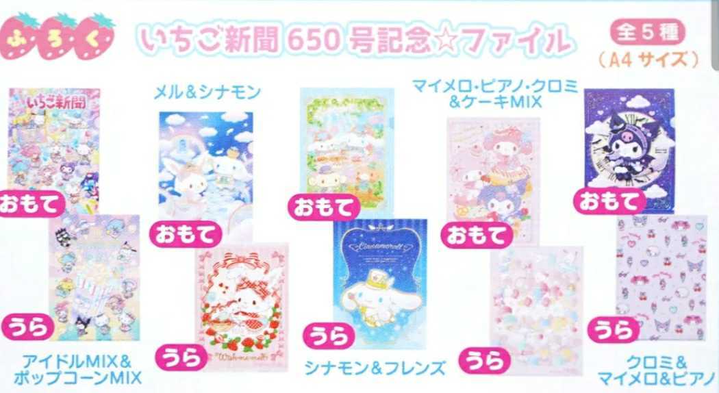いちご新聞 シナモロール ウィッシュミーメル クリアファイル
