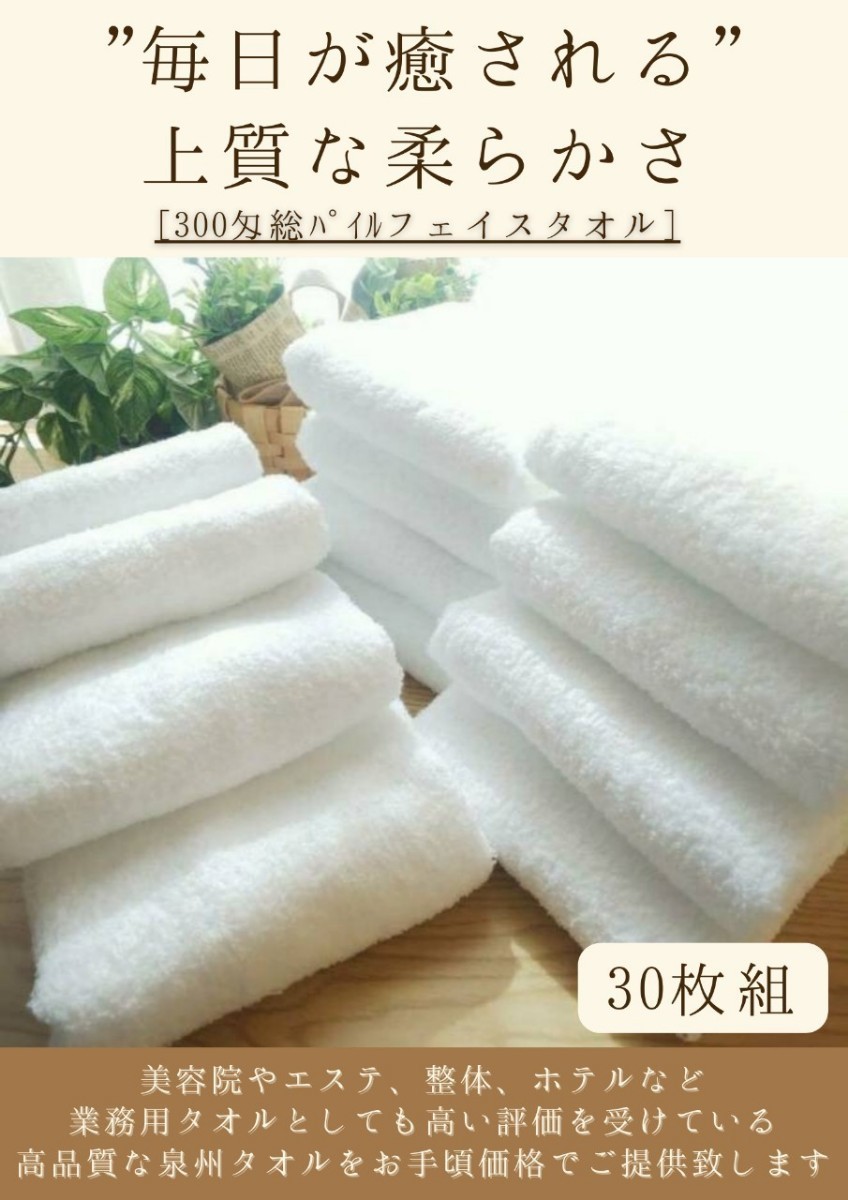 新品泉州タオル 300匁総パイルフェイスタオルセット30枚組 まとめ売り タオル新品 ふわふわ肌触り