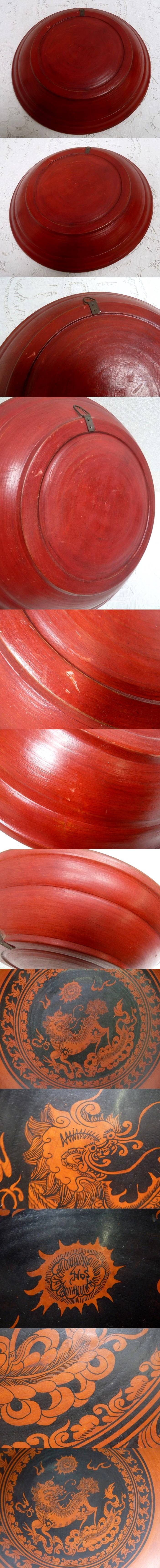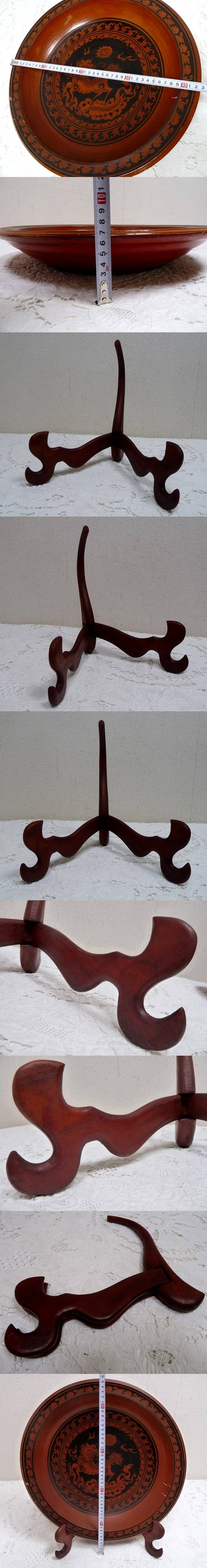 (☆BM)【大処分セール】木製 飾り皿 絵皿 直径42.5㎝ ウォールオブジェ 壁付け レトロ 麒麟 鳳凰 瑞獣 神話 動物 置物 絵皿 大皿 プレート