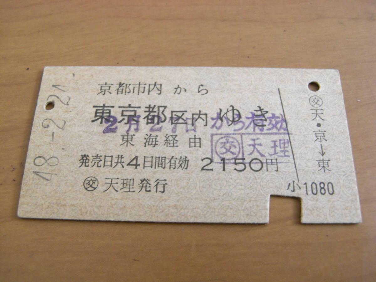 東海道本線 京都市内から東京都区内ゆき 東海経由 昭和48年2月24日 交 天理発行