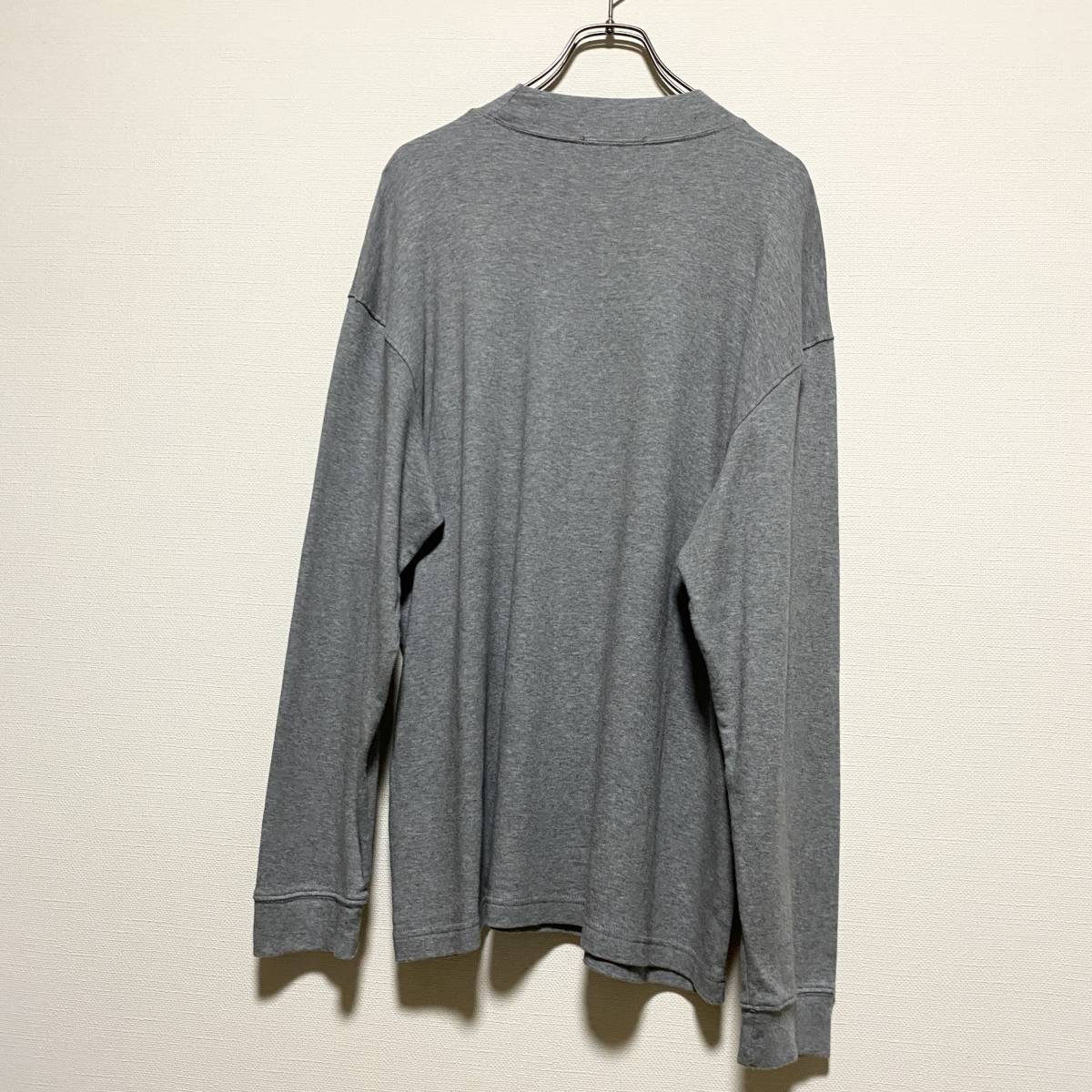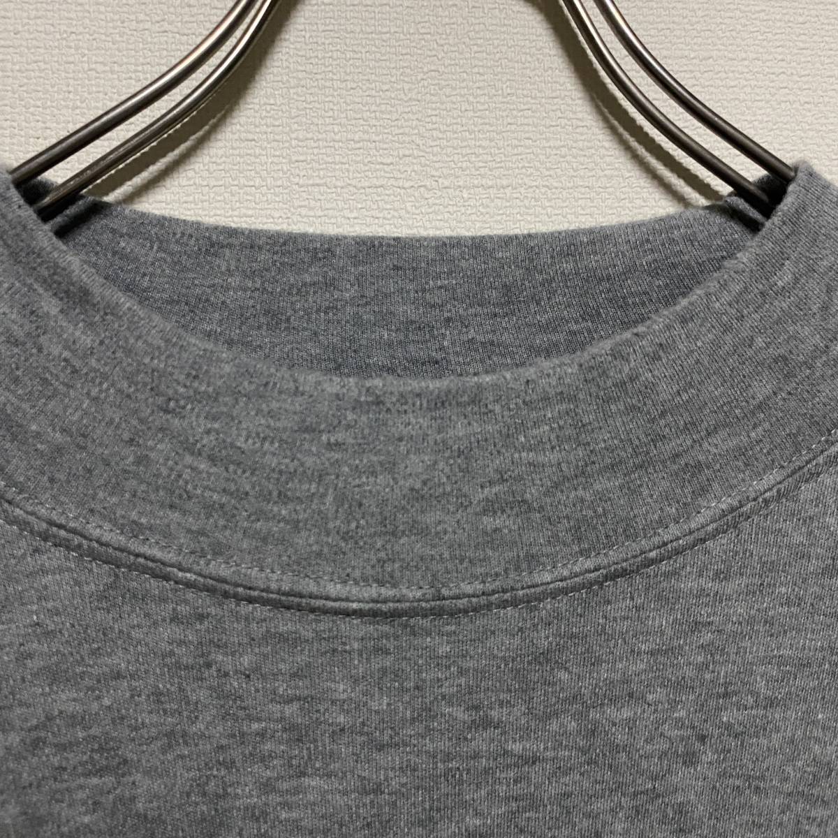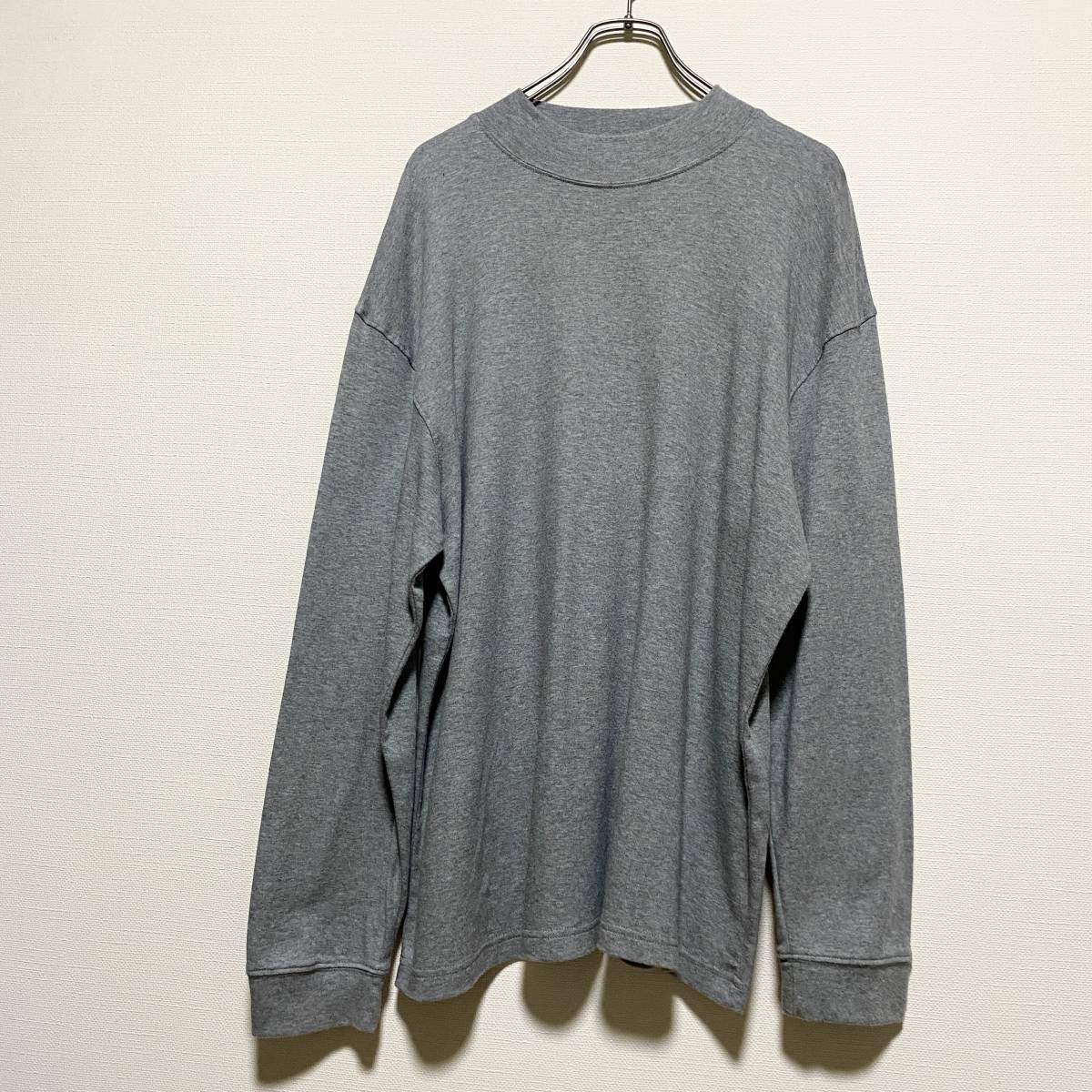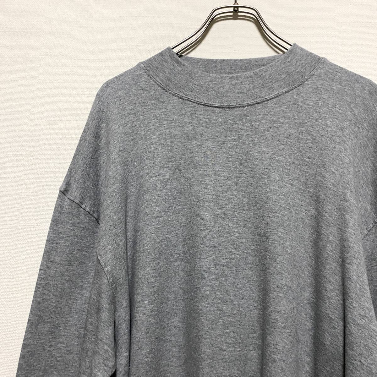 アメリカ古着 モックネック 長袖 Tシャツ ロンT 無地 Lサイズ コットン ライトグレー 【P383】