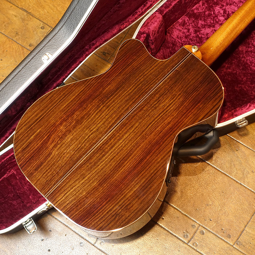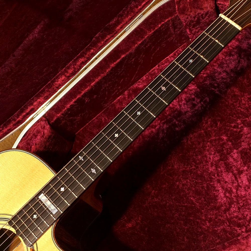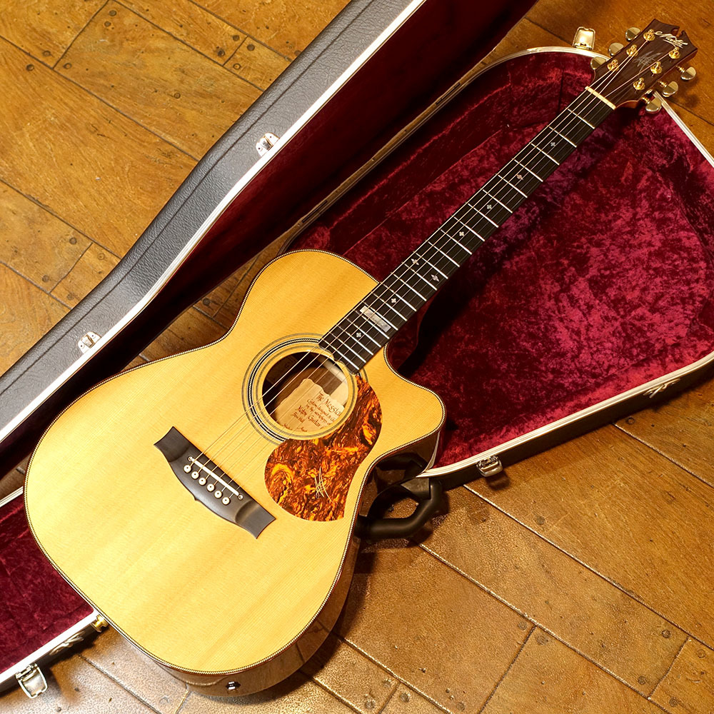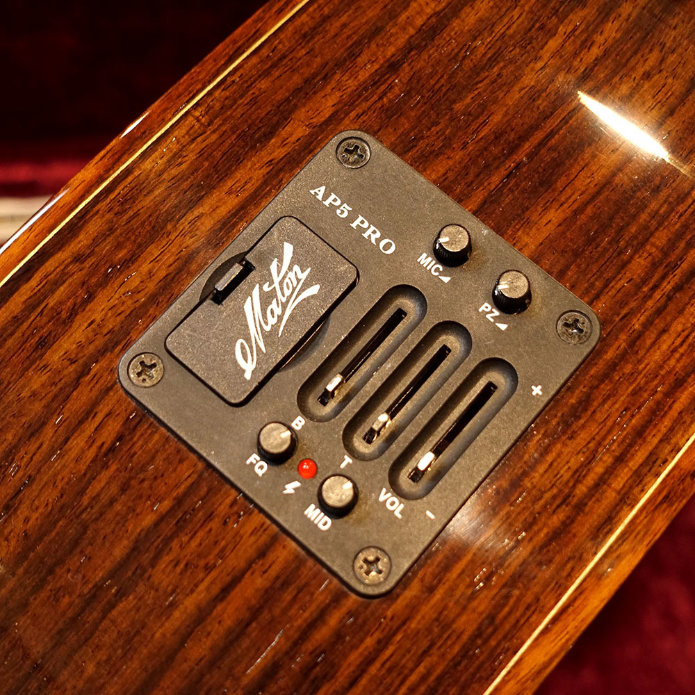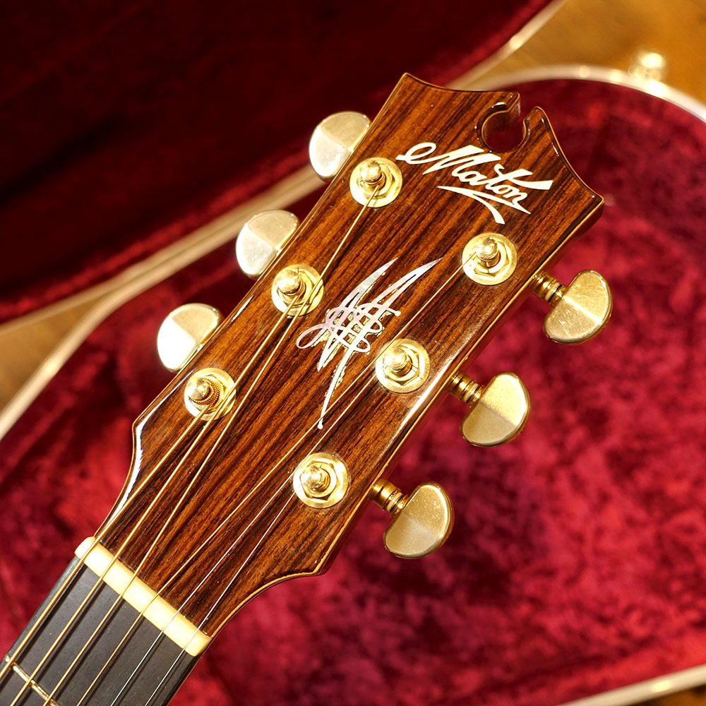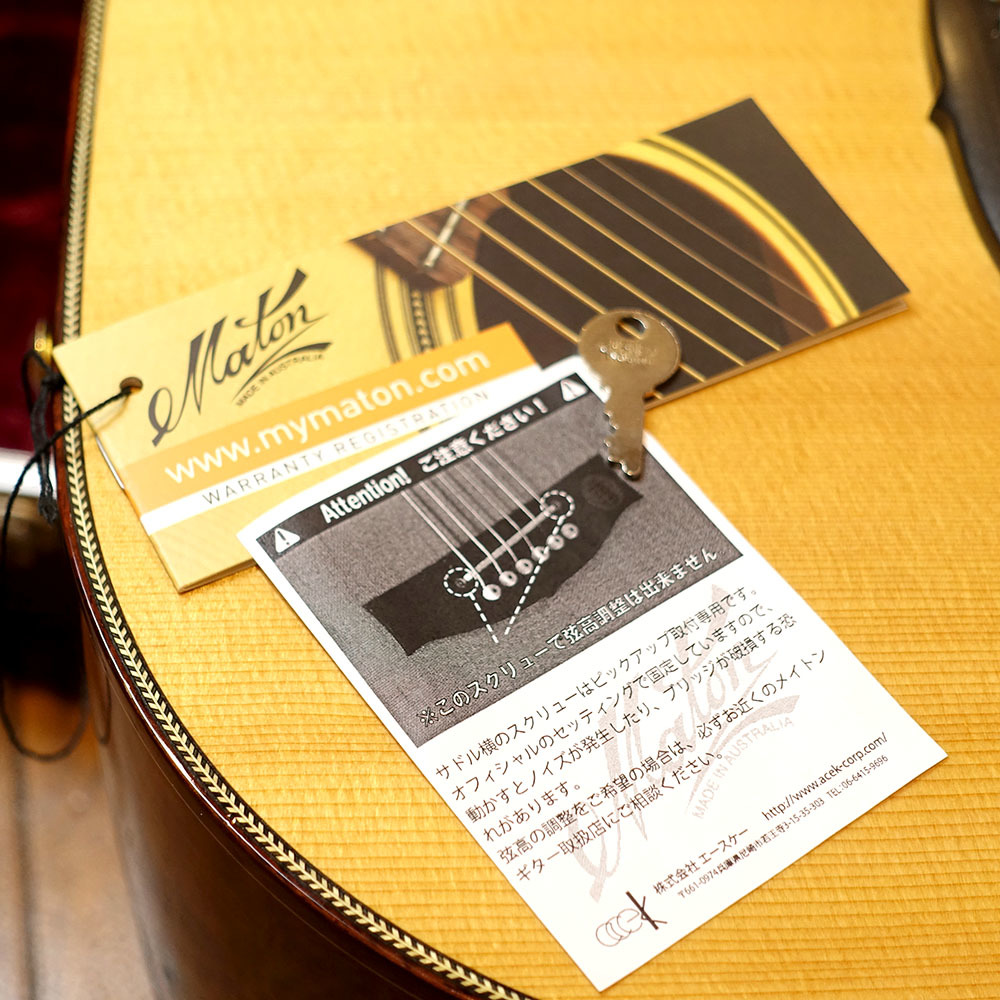 商品説明 | オーストラリア発の老舗ギターメーカー"Maton(メイトン)"。 レギュラー・ラインナップのフラッグシップモデルに位置するMessiah(メサイア)シリーズより、EM100C-808が中古で入荷いたしました。 選りすぐられた最高級AAAグレードのシトカスプルース・トップと、インディアンローズウッドをサイド&バックに採用したオール単板ボディ。 同社オリジナルのピックアップシステムAP5 PROを搭載し、コンデンサマイクとピエゾピックアップのミックスや3バンドEQなど手元で積極的なサウンドメイクが行えます。 熟練クラフトマンによって組み上げられるその精巧な作りは、まさにメイトンの”マスターピース”と呼ぶにふさわしい仕上がりです。 僅かに傷やハードウェアのくすみ等の使用感はあるものの、全体的に美しい外観をキープしています。 サドルが変えられているようで、現状で弦高は12フレット上1弦側で1.5mm、6弦側で2.2mm程度となっております。 フレットはあまり減っておらず、気になるようなビビりや音詰まり等なく快適に演奏していただける状態です。 取り回しの良いボディに、デュアルピックアップシステム搭載で好みやシチュエーションに応じてサウンドを使い分けられる頼もしい一本です。 気になった方は是非ご検討ください。 純正のハードケースが付属いたします。 ※専用のトラスロッドは付属いたしません |