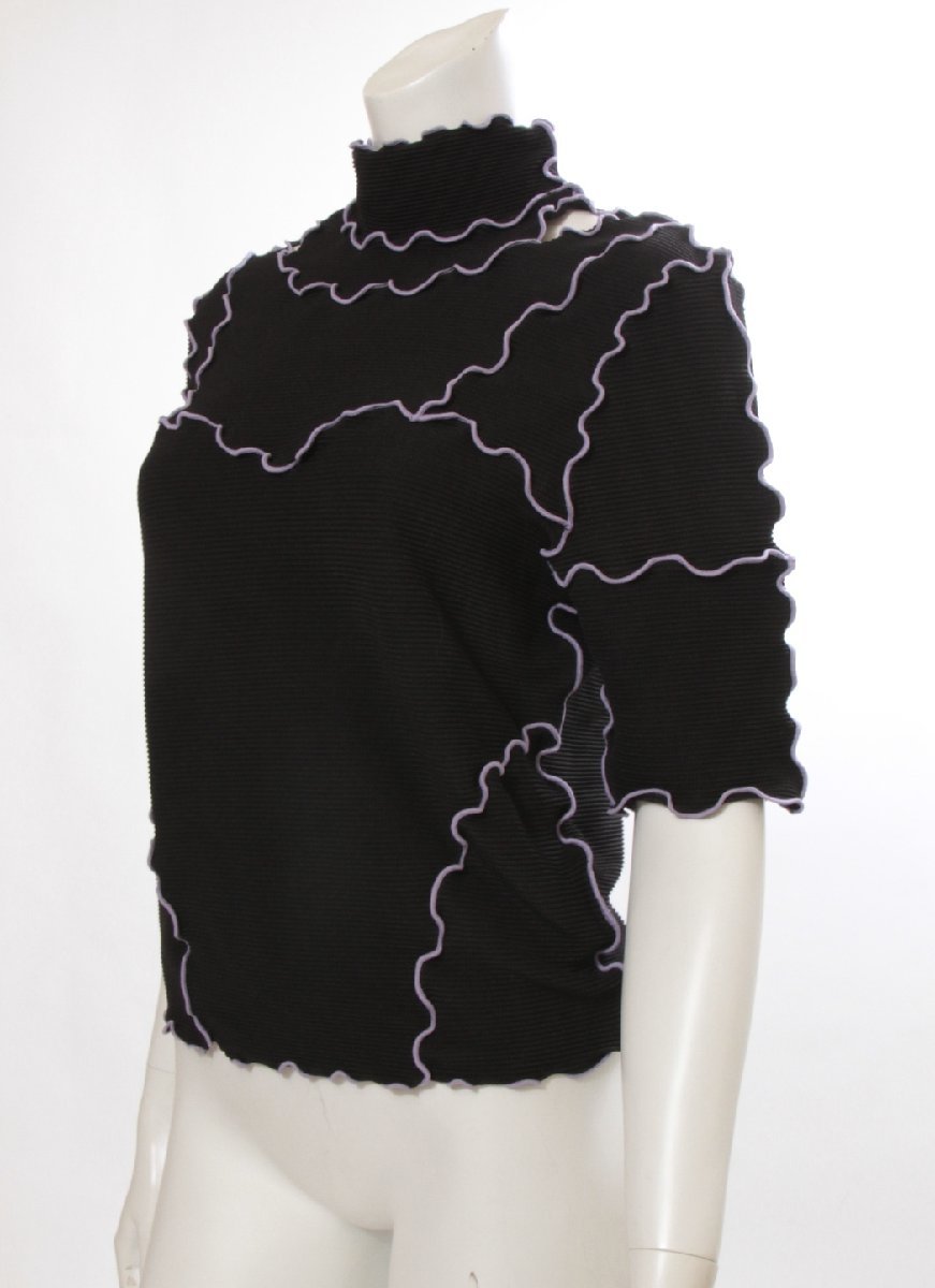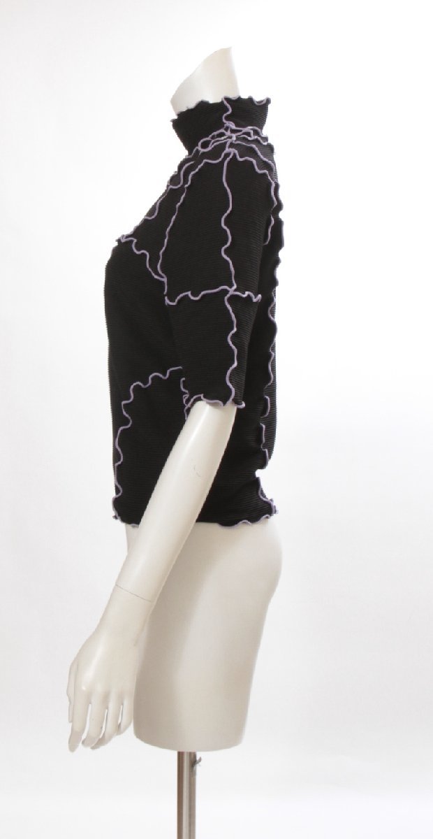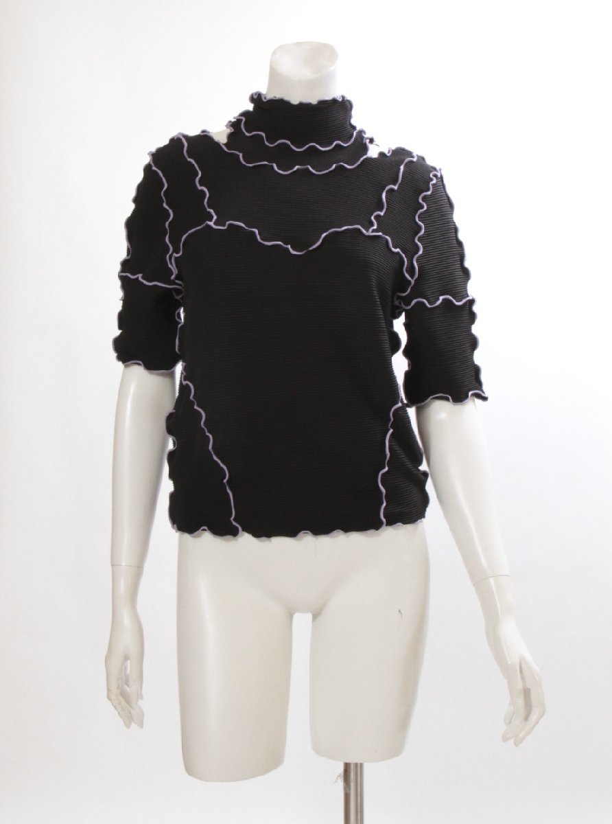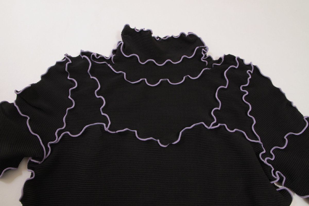 ウエハースのような凹凸感のある軽やかな素材を使用。首元にスリットが入っておりさりげない肌見せが叶います。