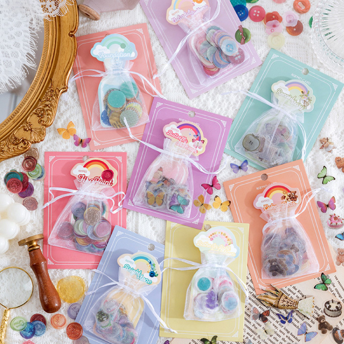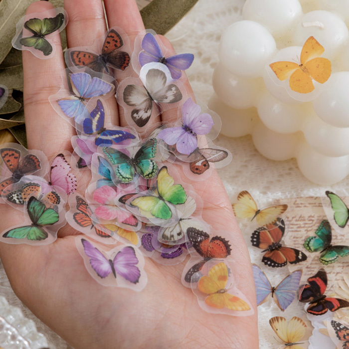 100枚 シール ボタン 蝶々 ダイヤ 雑貨 アンティーク ビンテージ 透明ステッカー デコステッカー コラージュ レトロ 耐水 0502-3