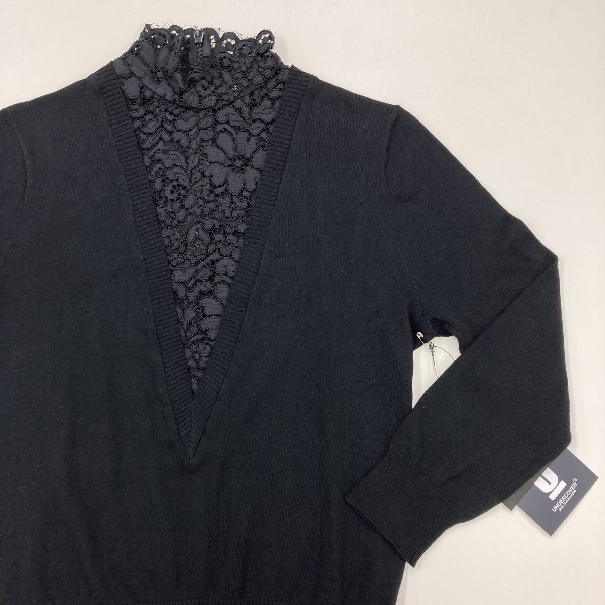 2022SS UNDERCOVER レース 切替 ハイネック Vネック 長袖 ニット カットソー ブラック タグ付
