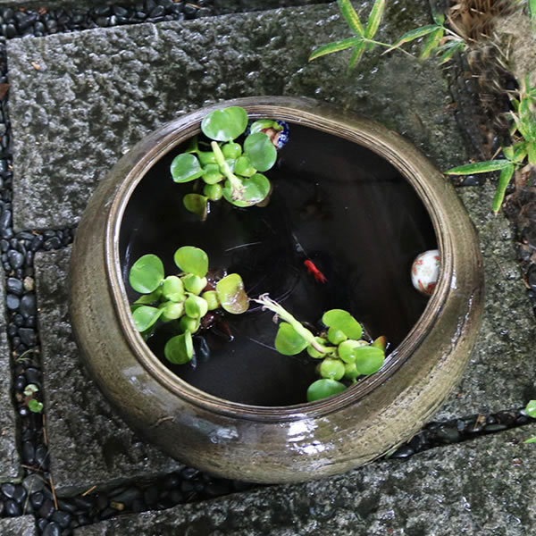 信楽焼の水鉢 | 信楽焼の睡蓮鉢は、お庭に和風の空間を創造してくれるのにピッタリなアイテムです。 スイレンをはじめ蓮(ハス)、アサザ、ヨシなどを焼き物の鉢で涼しげに育ててください。 また、 金魚鉢やメダカ鉢にもピッタリです。 竹、柄杓を使い蹲(つくばい)、花器、花瓶、庭つぼ、手水鉢、水甕(水がめ)としてもお使い頂けます。 すいれん鉢の中に四季を感じてください。 |