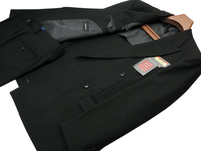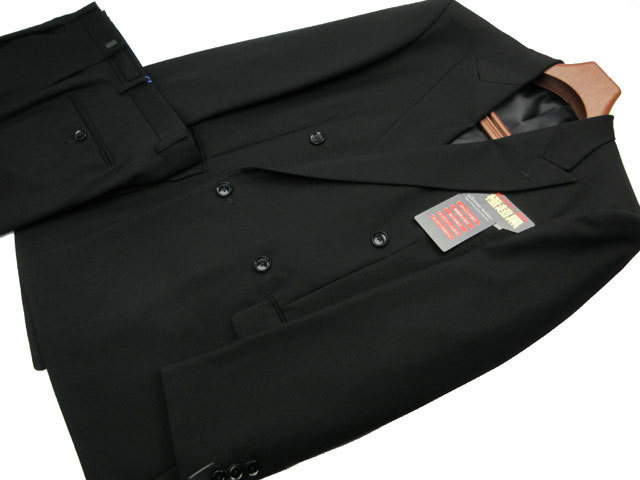新品 A8 身長185㎝ 胴囲86㎝ 礼服 ウール100% 大きいサイズ 春夏秋冬 オールシーズン ブラックフォーマル ダブル 冠婚葬祭 黒 LL 3L 337