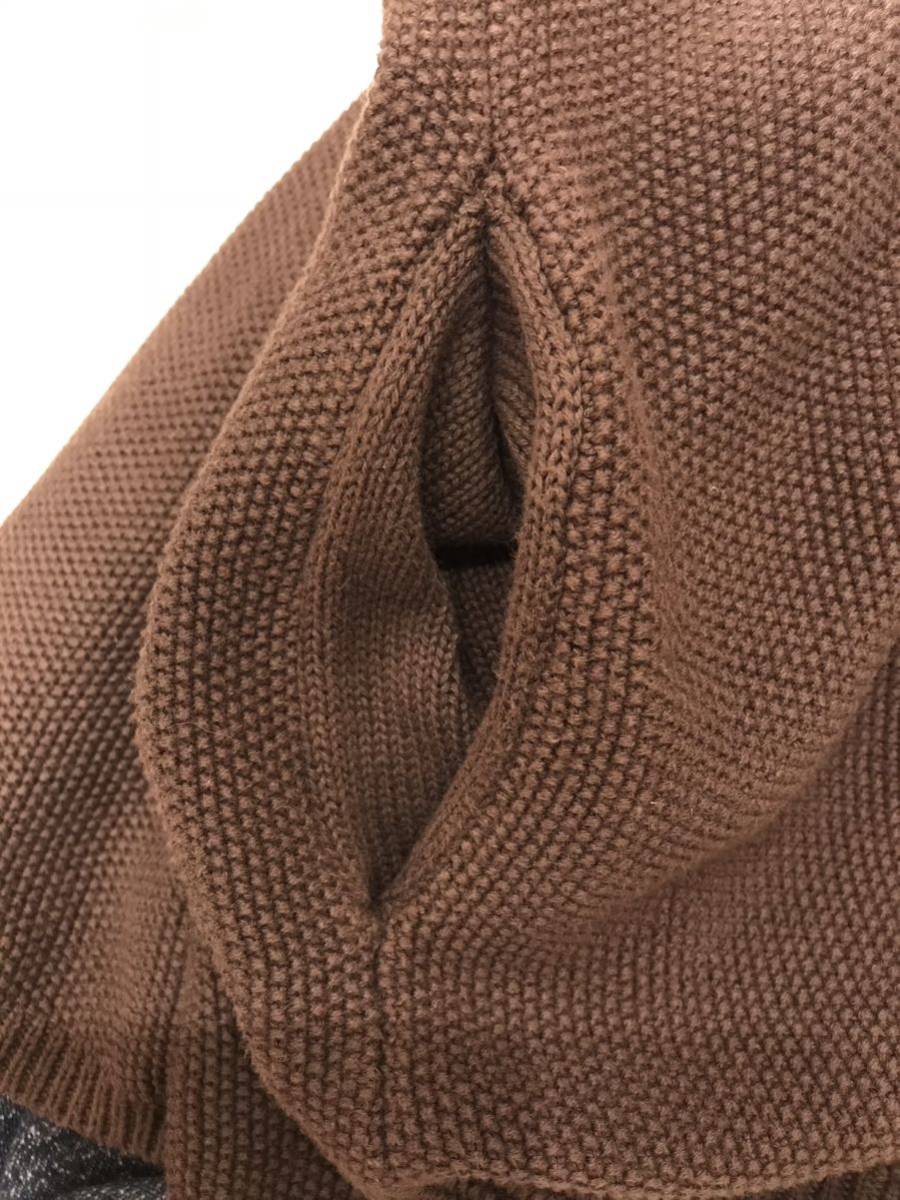 TシャツにレイヤードならLサイズ相当の方でも大丈夫だと思います。ベストトップスでは珍しくサイドポケット付きと言うユニークなアイテムで襟はクルーネック、生地は厚手のコットンニット、ルーズラインで着崩した感じでゆるく着ていただければと思います。