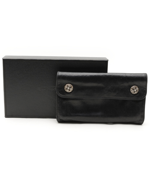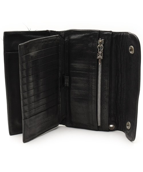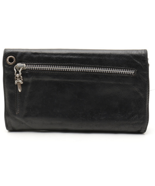 CHROME HEARTS クロムハーツ ◇ WAVE ウェーブ ウォレット 長 財布 ◇ デストロイ 加工 レザー 皮 革 クロスボール