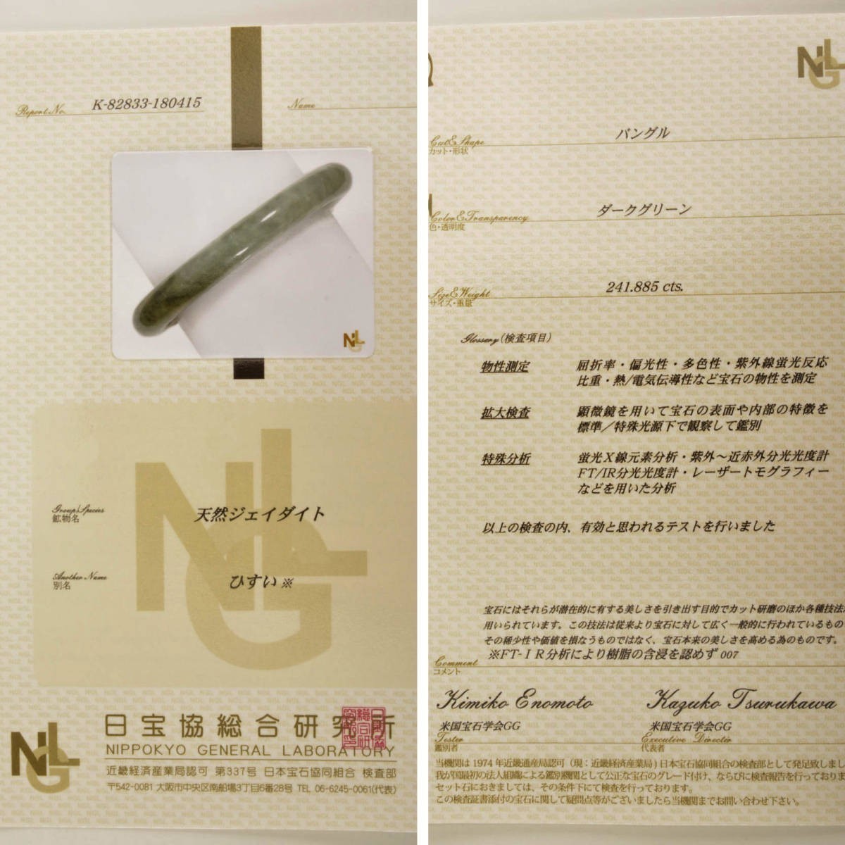T06048 A貨 天然ジェイダイト バングル 証明書付:真作
