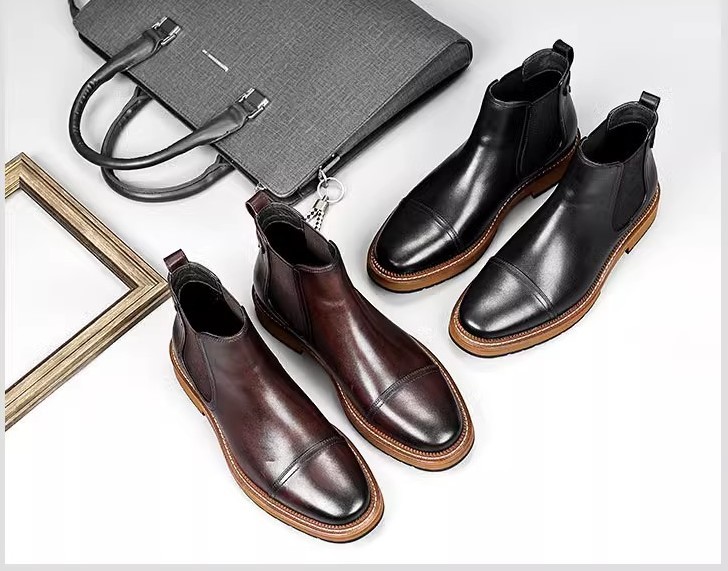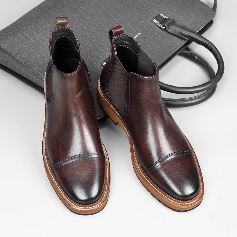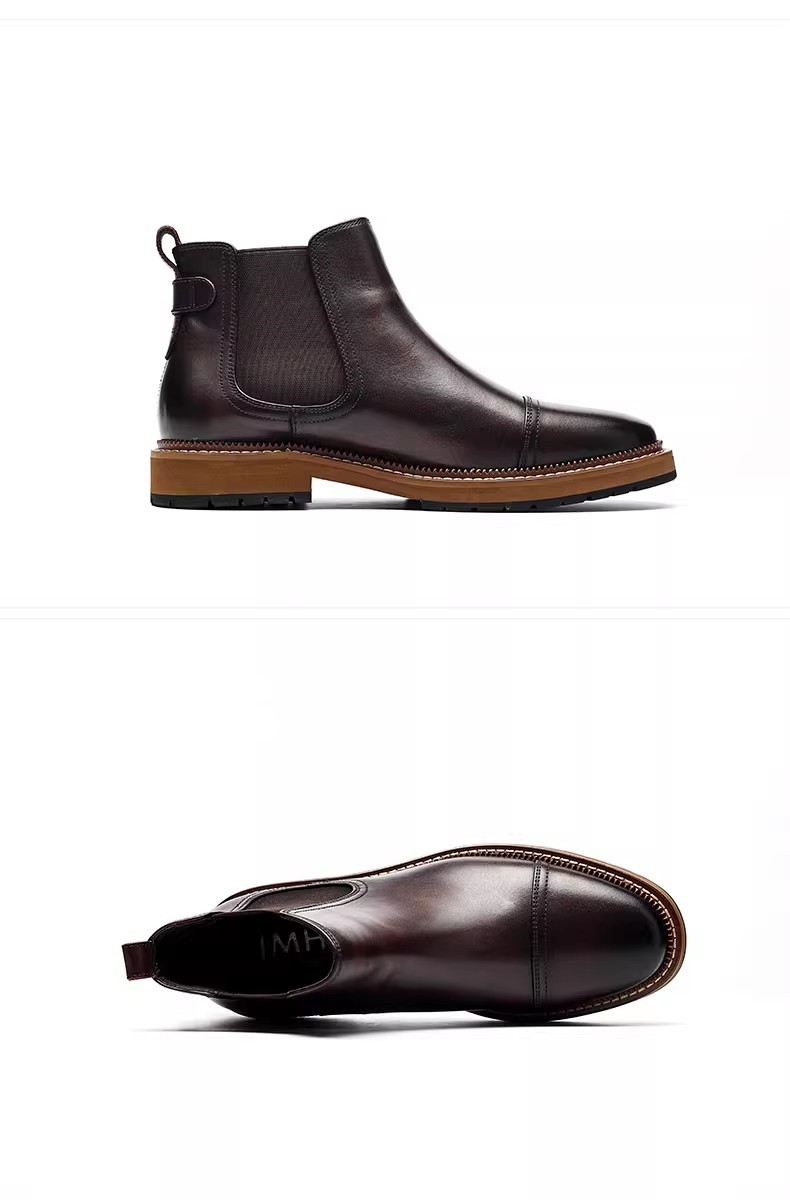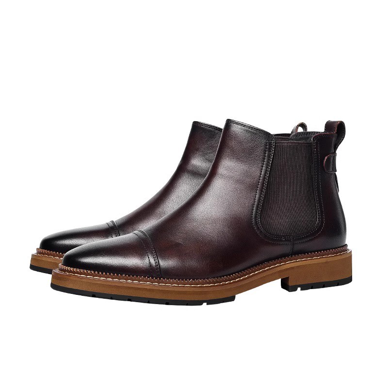 NEW♪ 本革 メンズショートブーツ サイドゴアブーツ レザー 牛革 ヨーロピアン ストレートチップ ◆ダークブラウン DJ 26.5cm